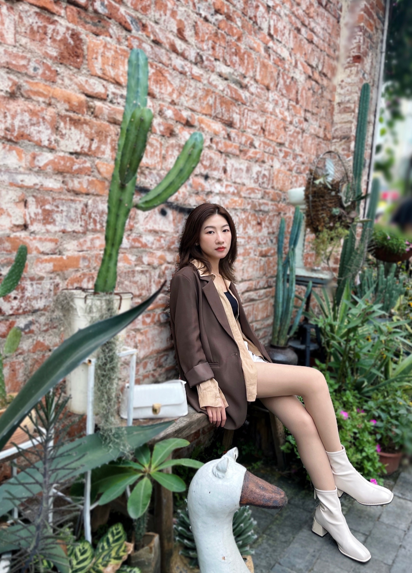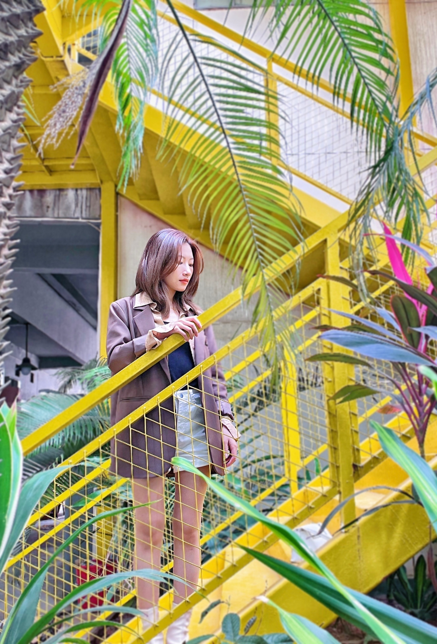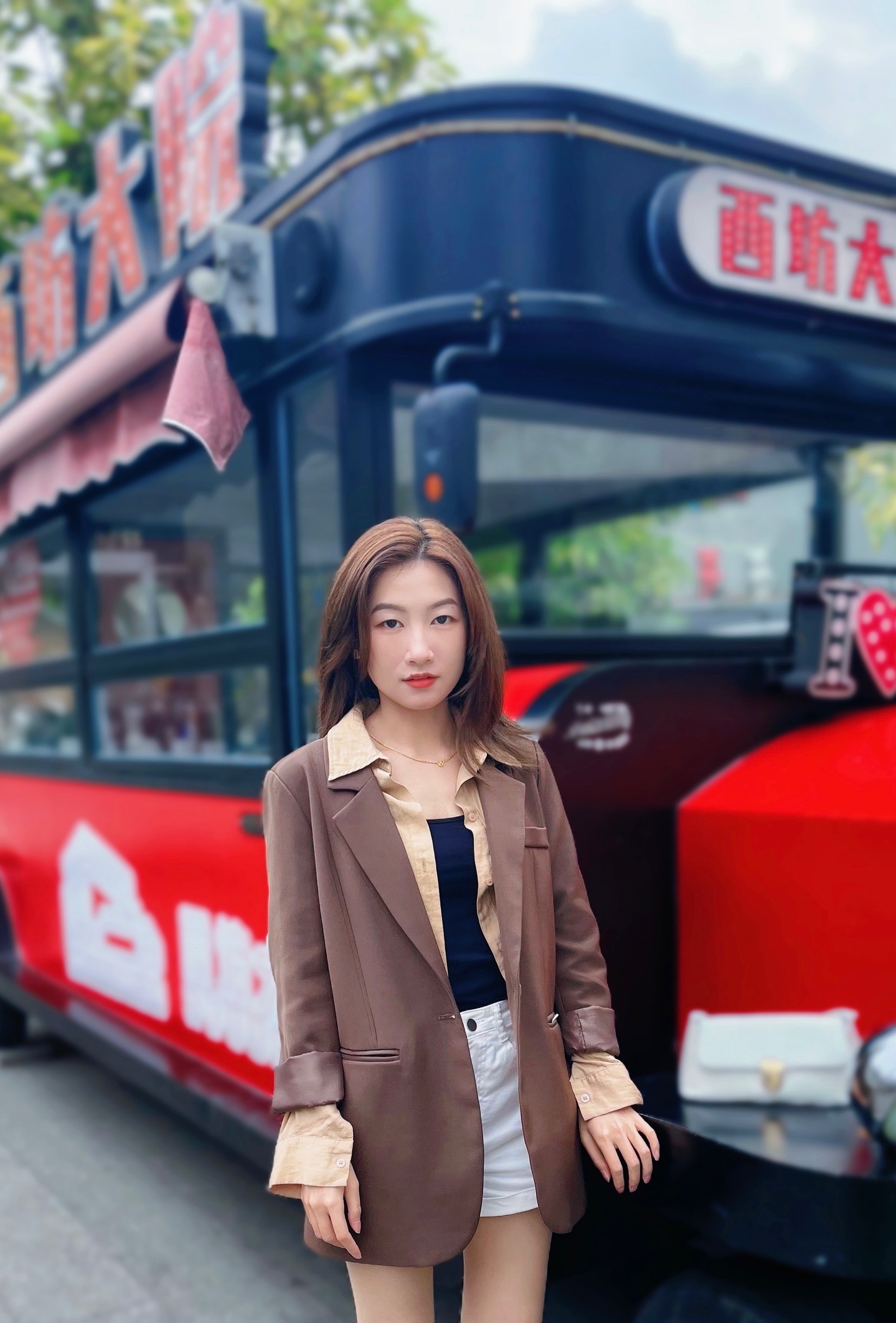 穿搭:背心+短裤+衬衣+西装外套+短靴+白色包包