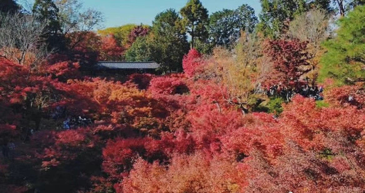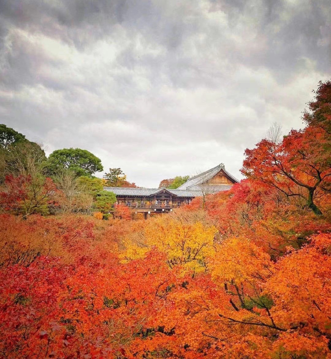 日本 Kyoto 东福寺是京都最美赏枫地之一 是红叶季的热门景点 东福寺距离伏见稻荷大寺不远 所以游客众多 东福寺是京都最大的禅寺 由奈良东大寺和兴福寺而得名 漫天的红叶随风飘落 这盛景让人不禁感叹
