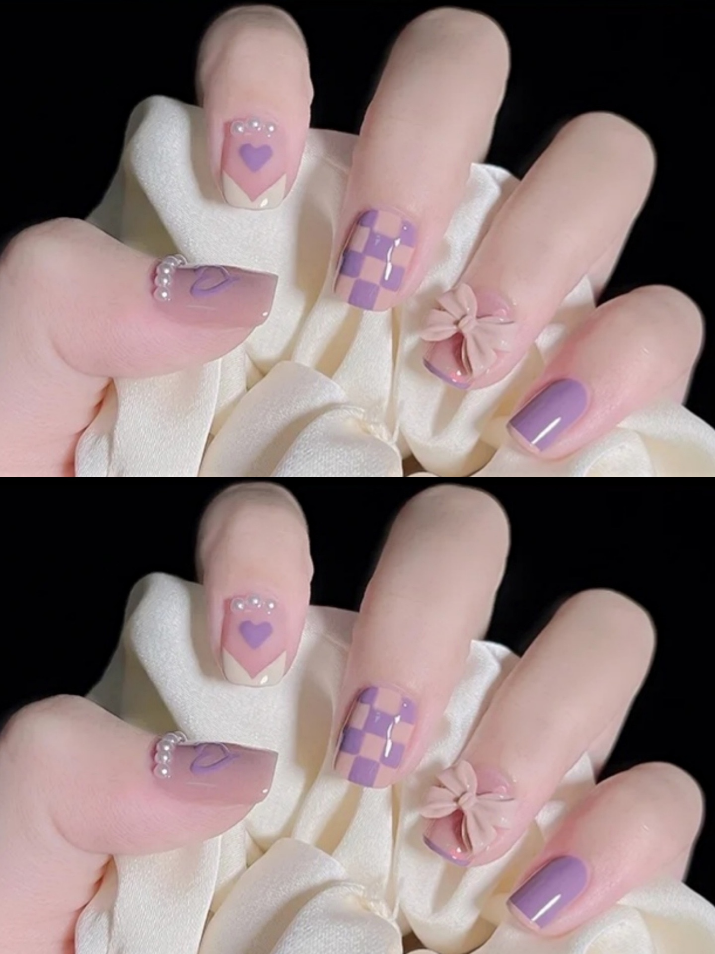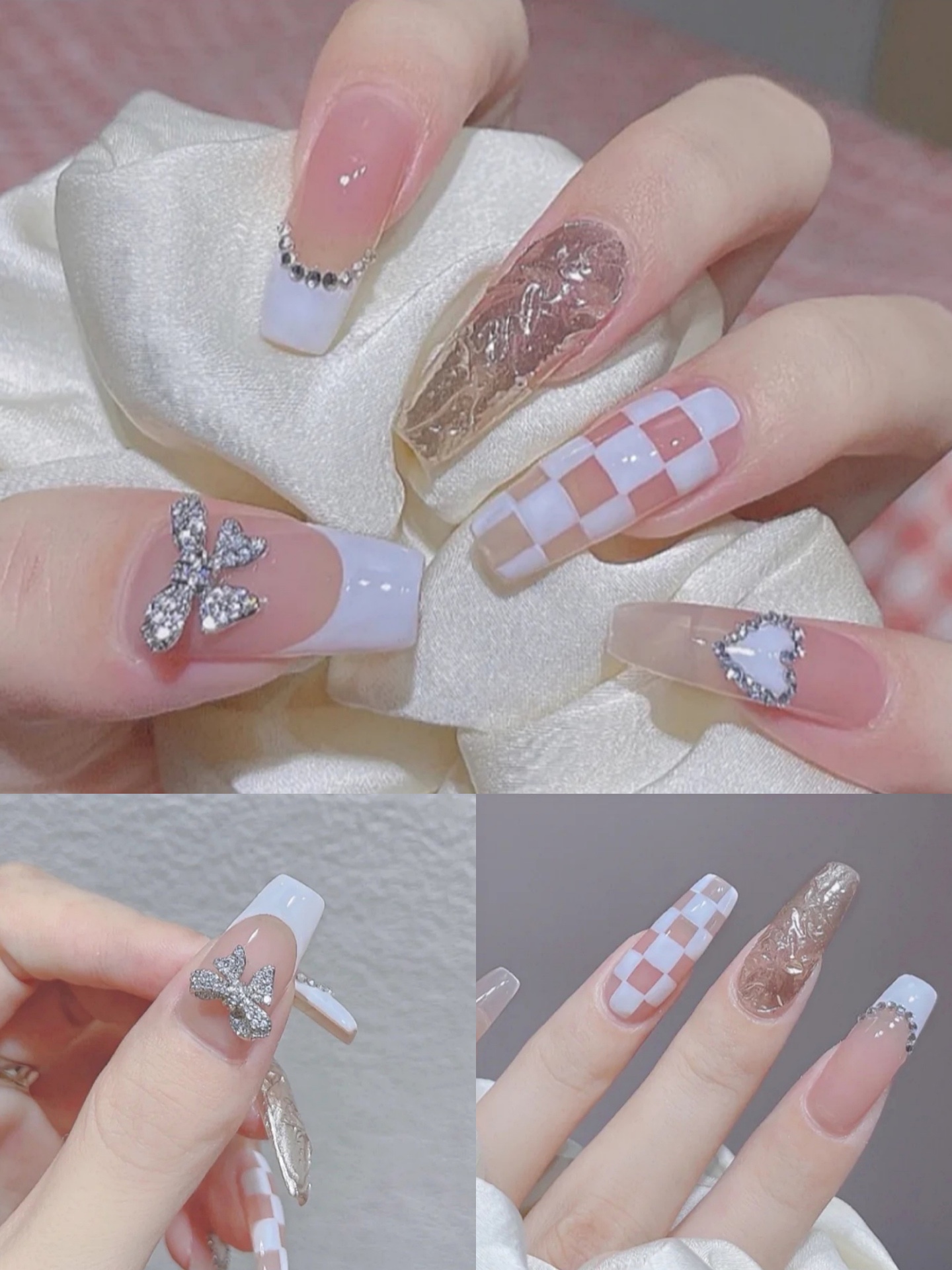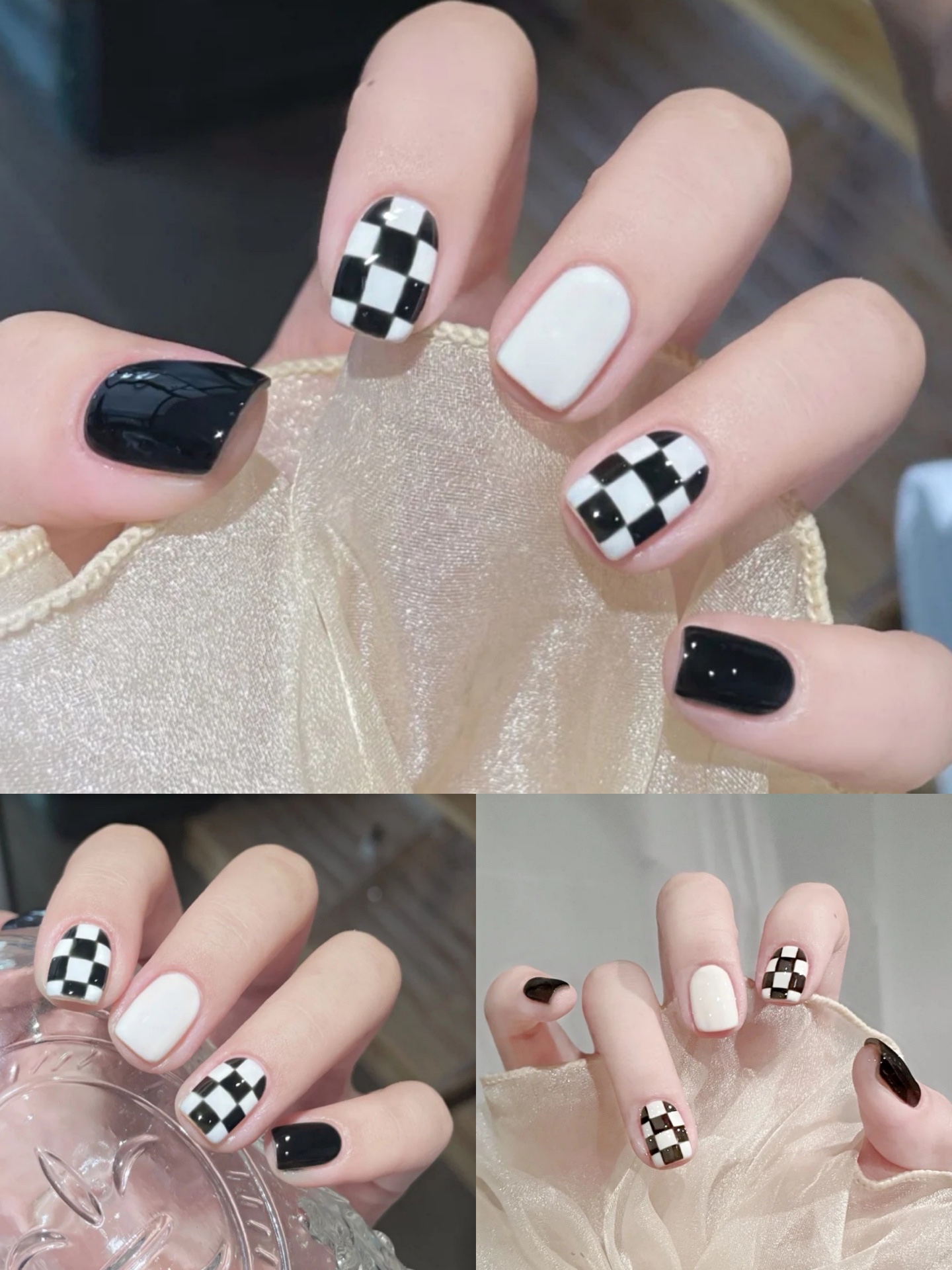 还有小宝没做过今年很火的棋盘格美甲嘛?这完全是秋冬天心心念念的菜啊!粉白粉白的不要太可爱了,配色真的绝绝子,好看又百搭的赶紧安排一下哦~