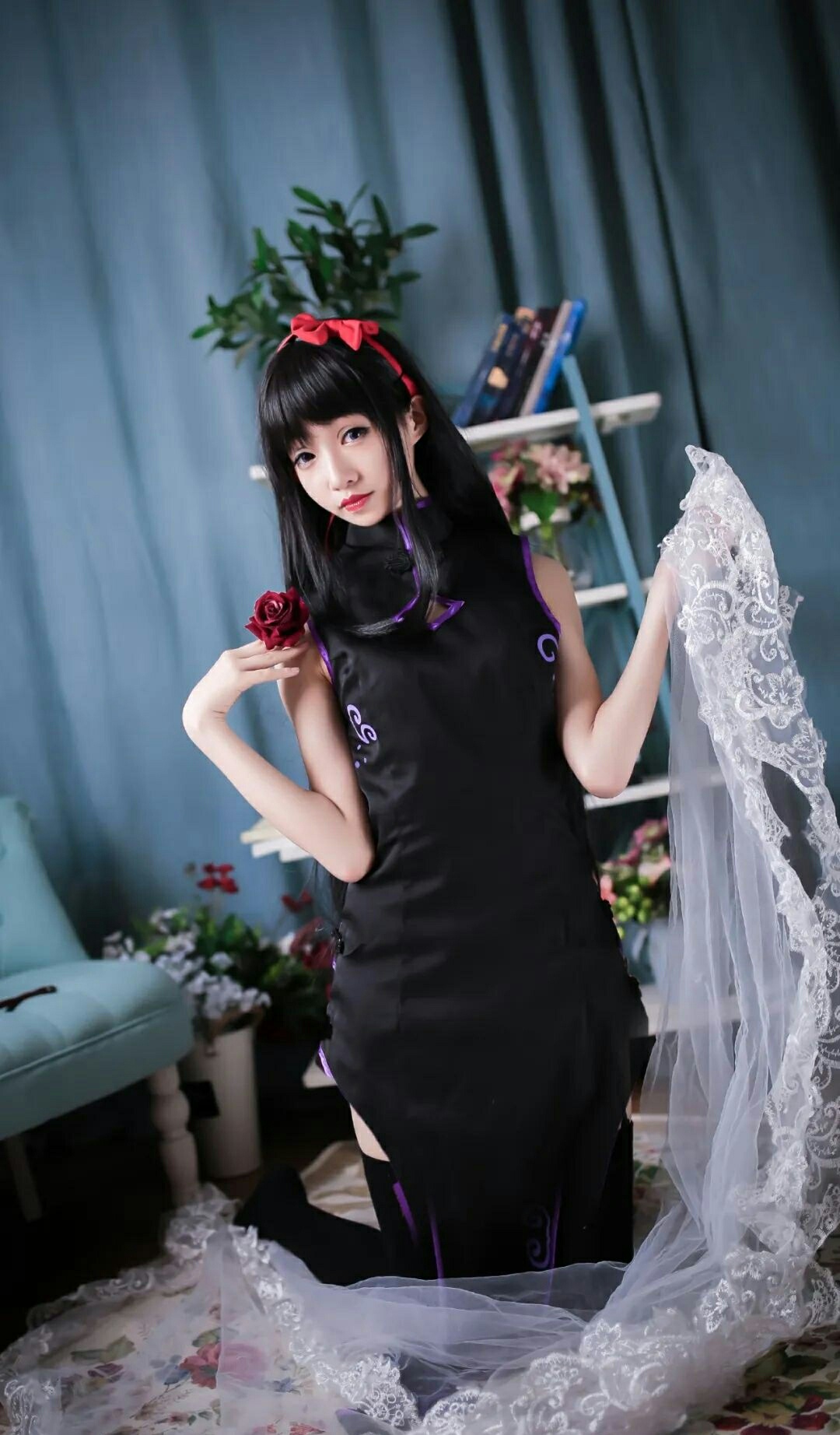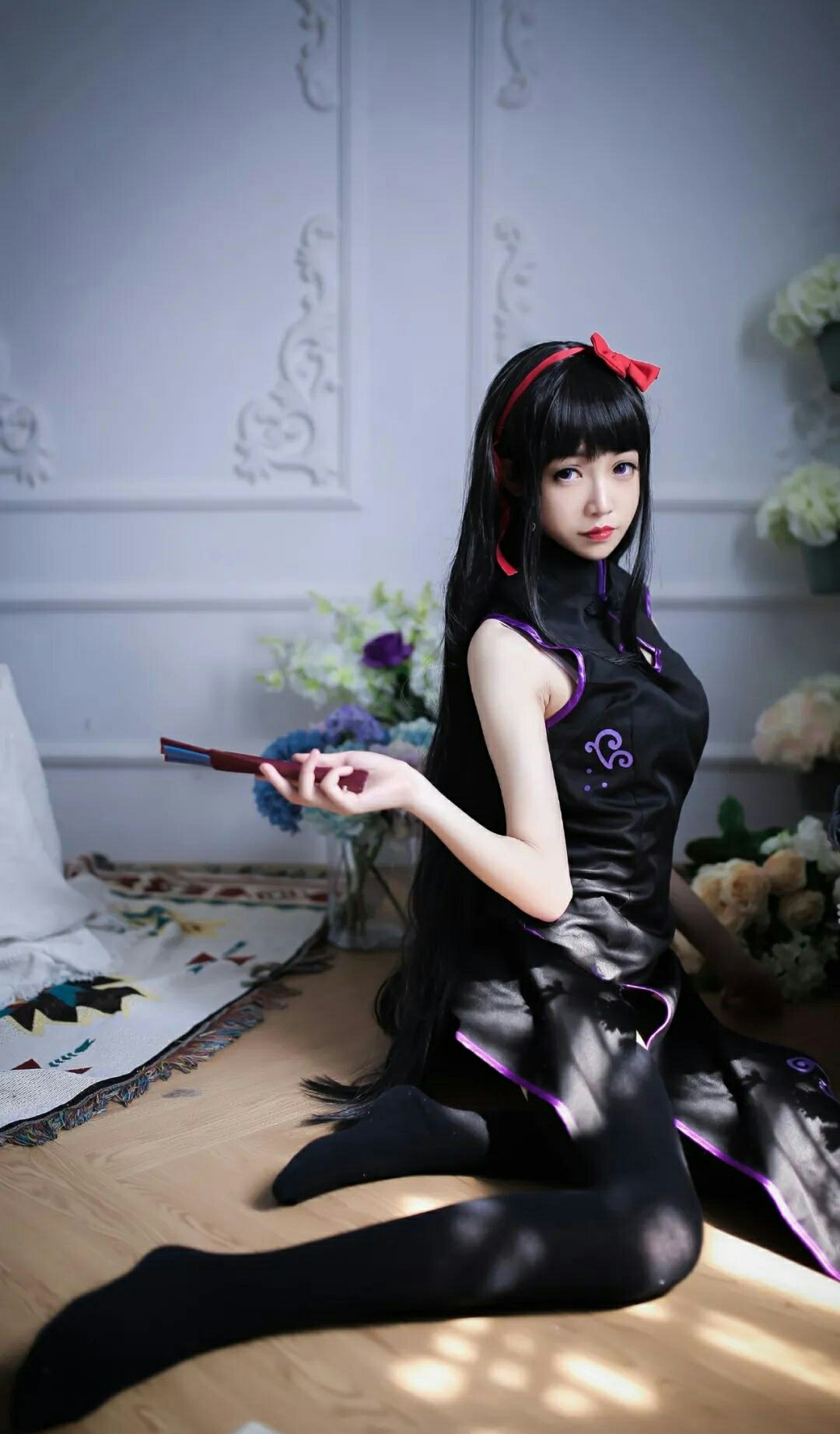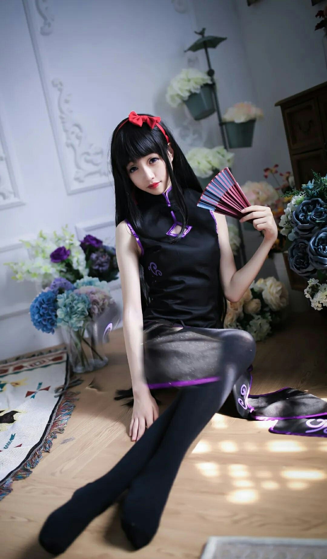 cos:魔法少女小圆丝质黑旗袍晓美焰cos正片
