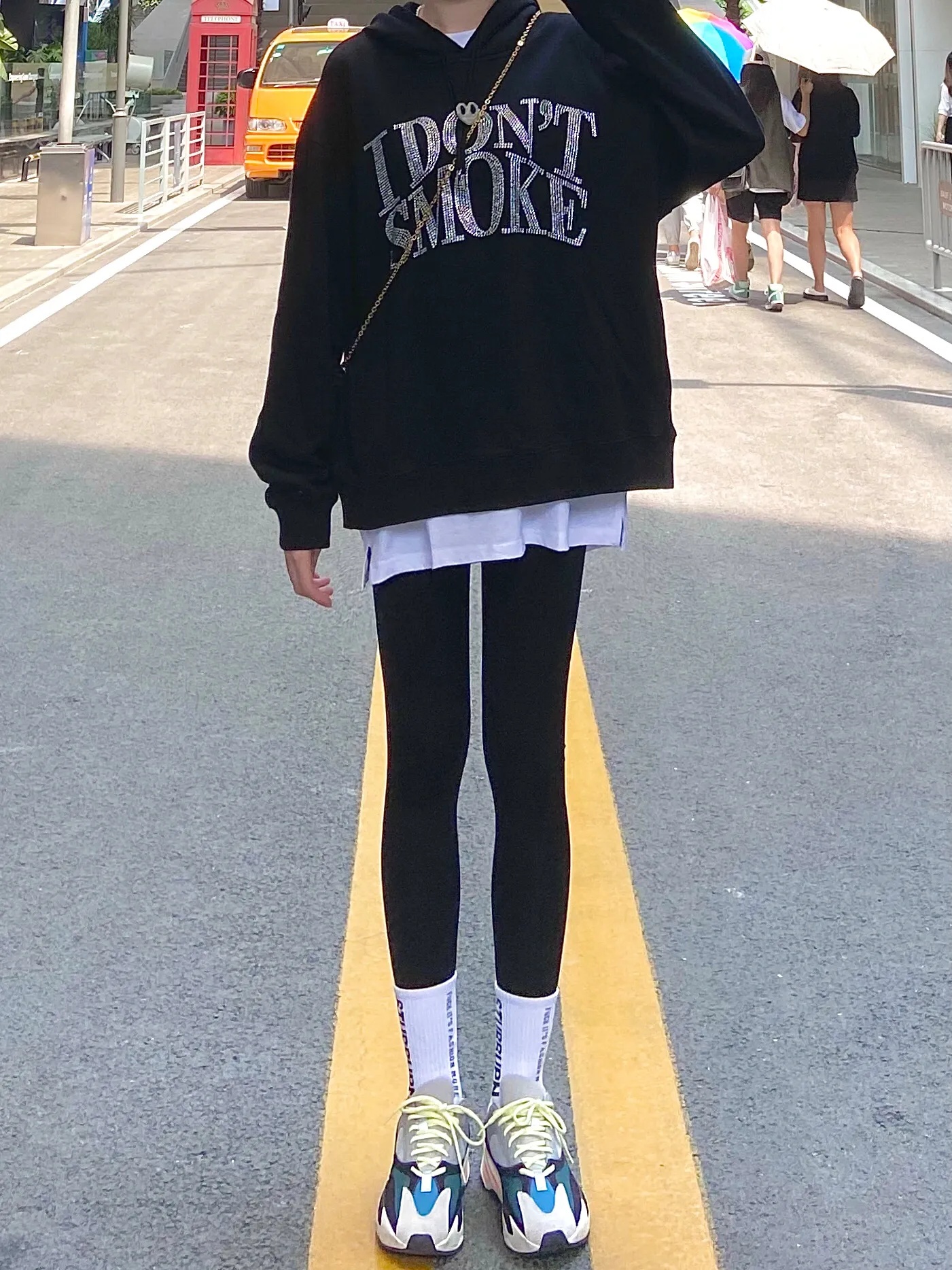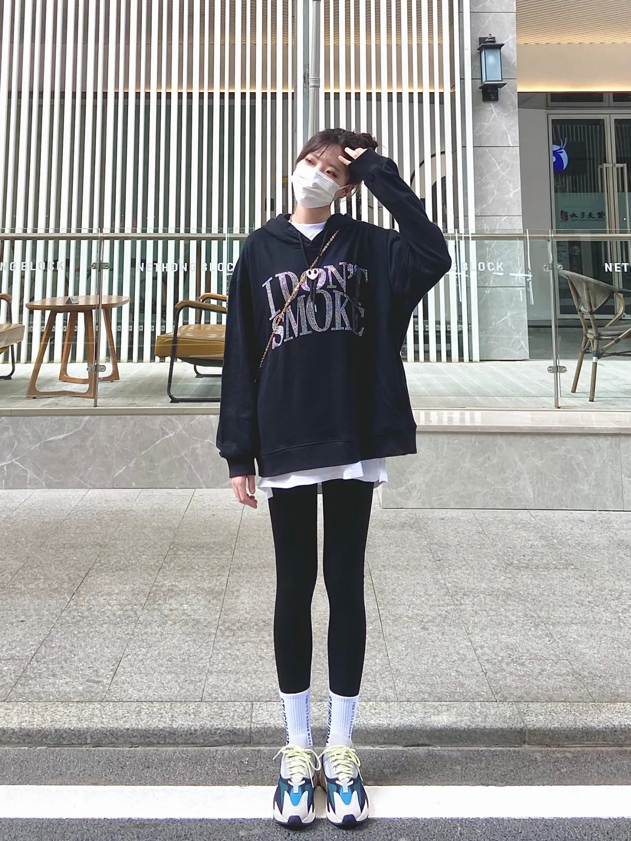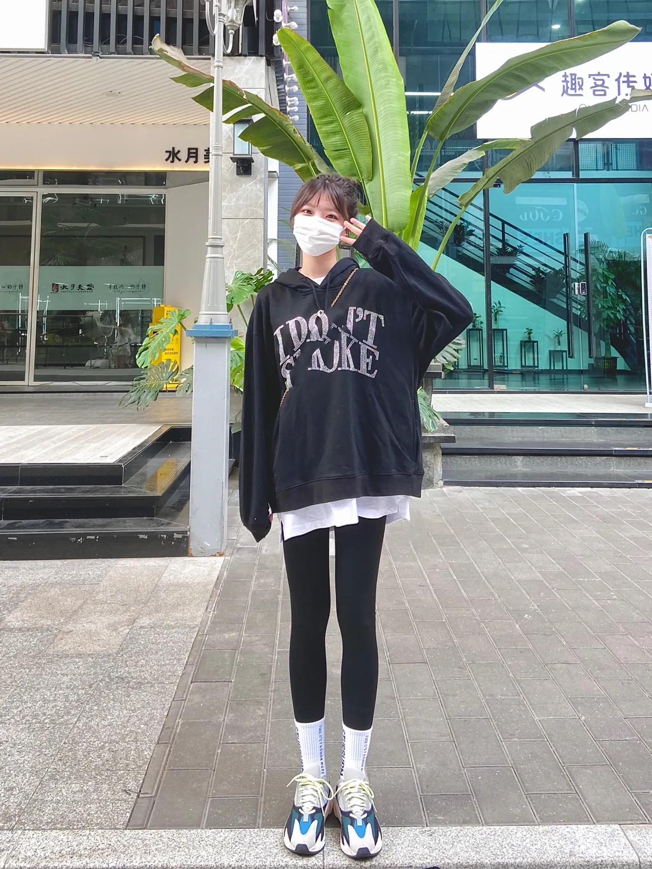 大学生穿搭|高个子|丸子头|初秋穿搭|运动风|leggings推荐|帽衫|连帽卫衣推荐|球鞋推荐|球鞋搭配|鲨鱼裤推荐|每日穿搭|yyds|丸子头|打底裤