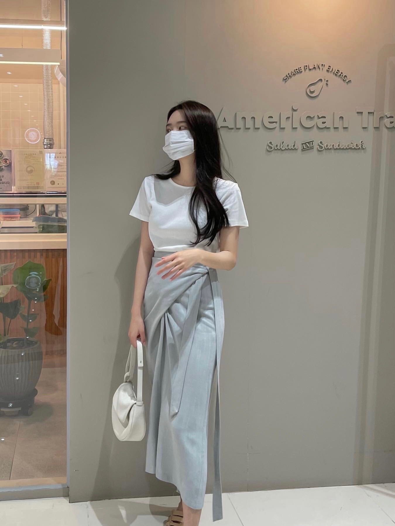 穿搭亮点:搭配灰色蝴蝶结长裙。显得肤白又层次感十足的搭配,裙子设计很独特,档次很高,清纯气息和仙气都稳稳掌控住。