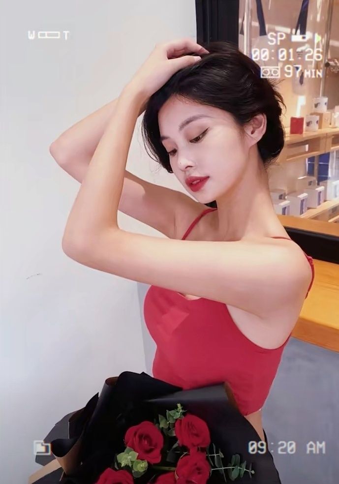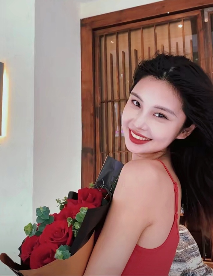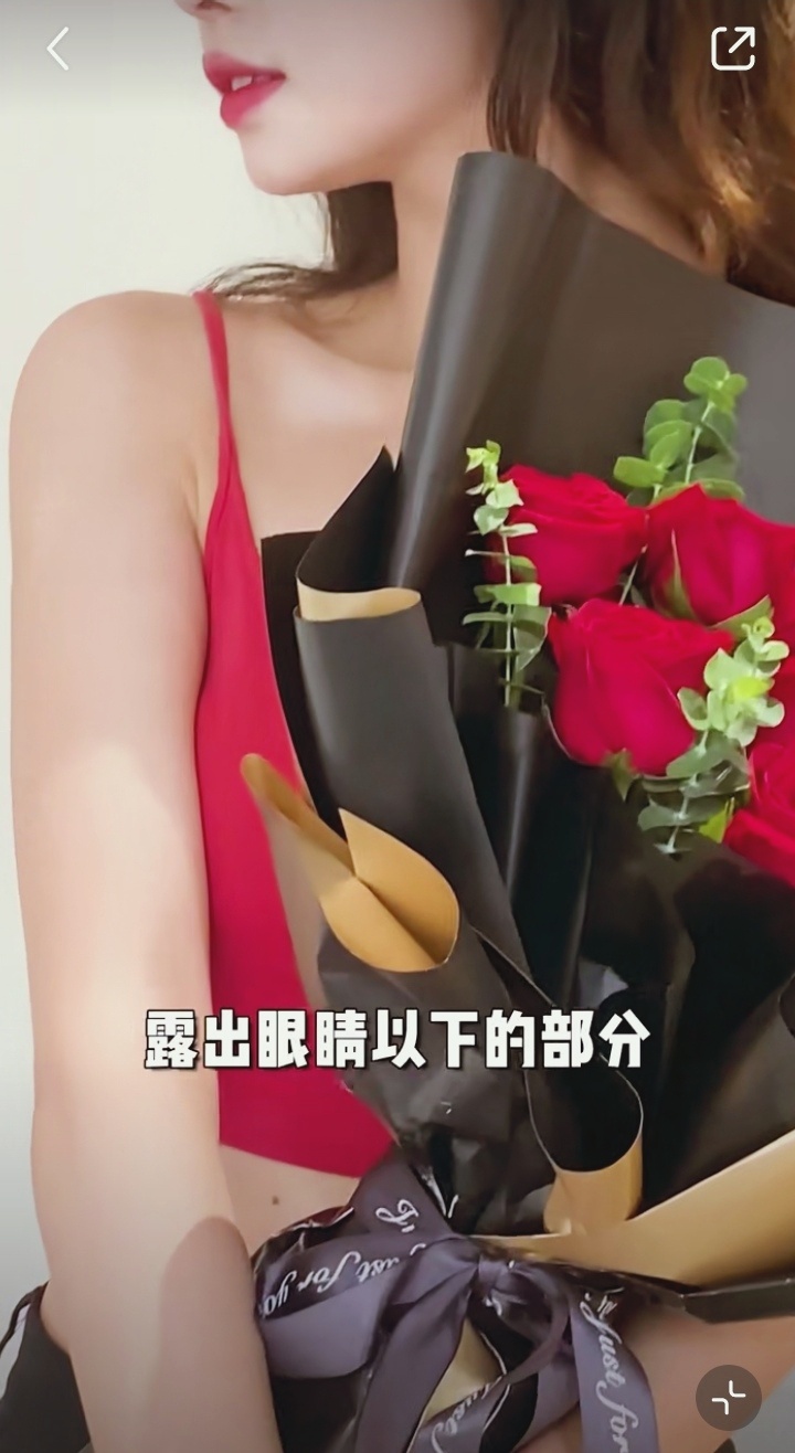 2⃣ 把花放在胸前再侧个脸,画面放大露出眼睛以下的部分 局部特写更高级