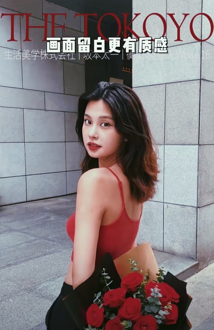 5⃣ 人物放在右下4格,侧身回头把花拿在胸前,又纯又欲显脸小