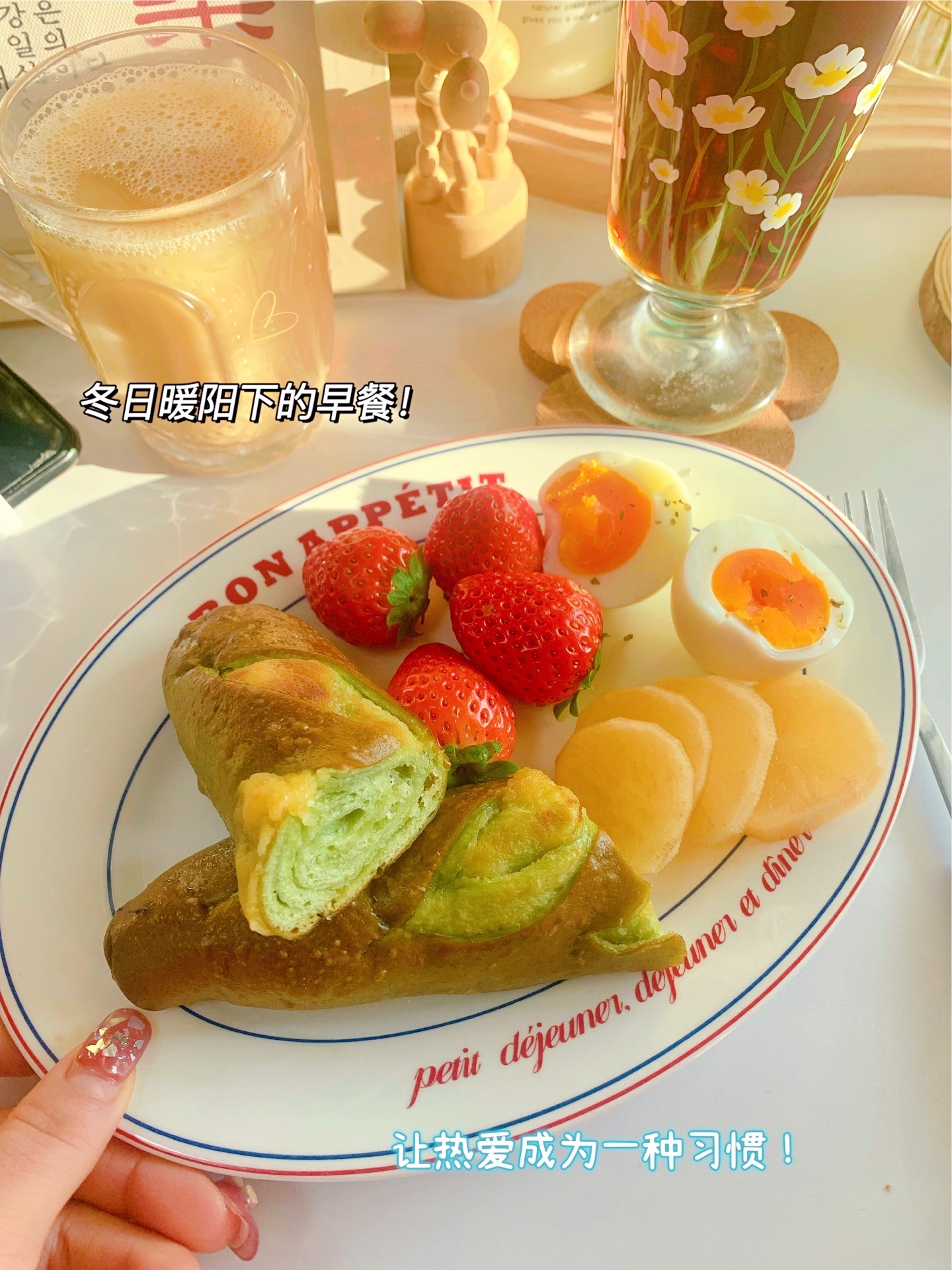 ▪️:早上好呀!冬季在暖阳下吃早餐真的是很幸福呢!再忙也要好好吃饭哦!新周快乐哦!