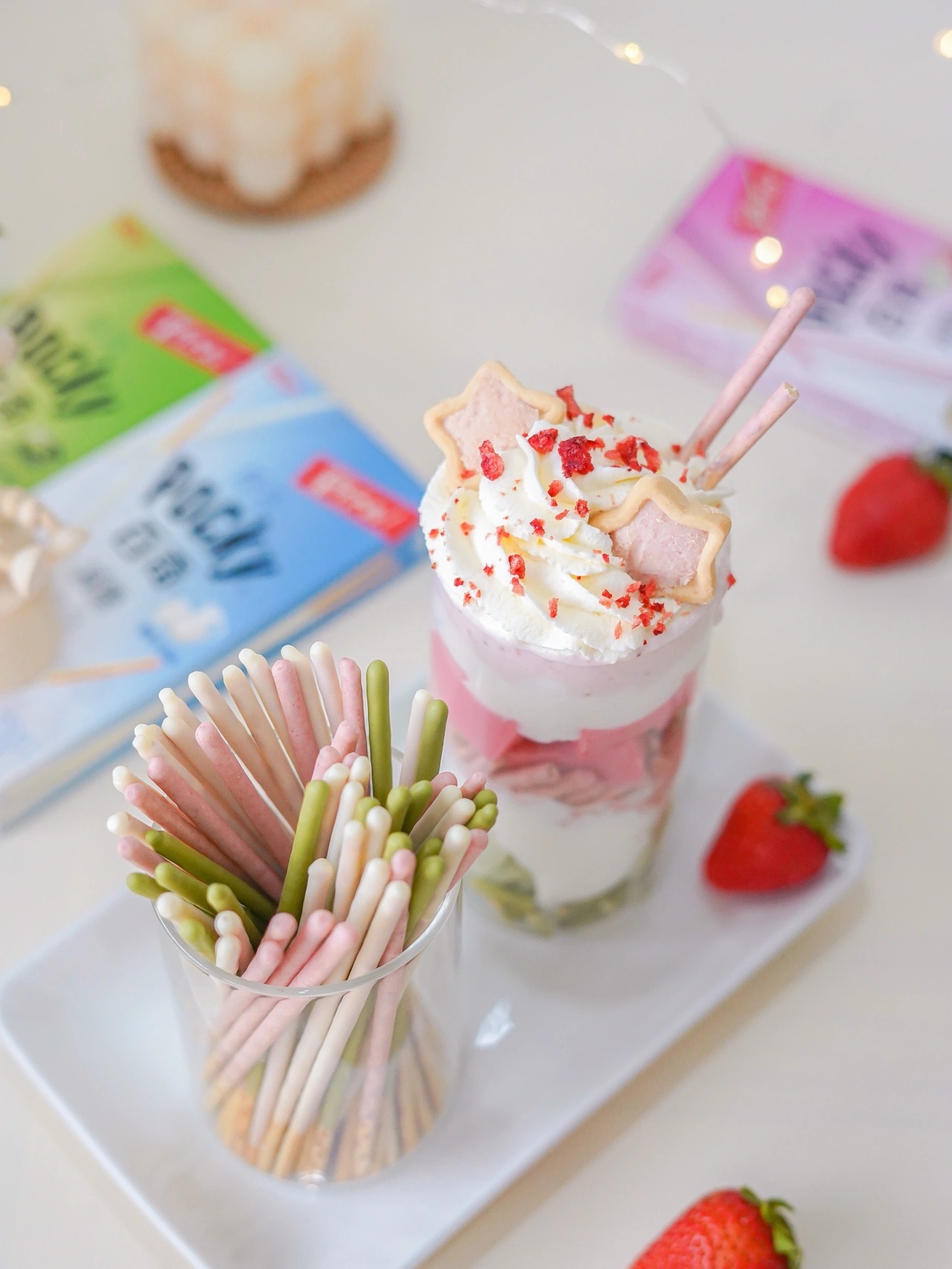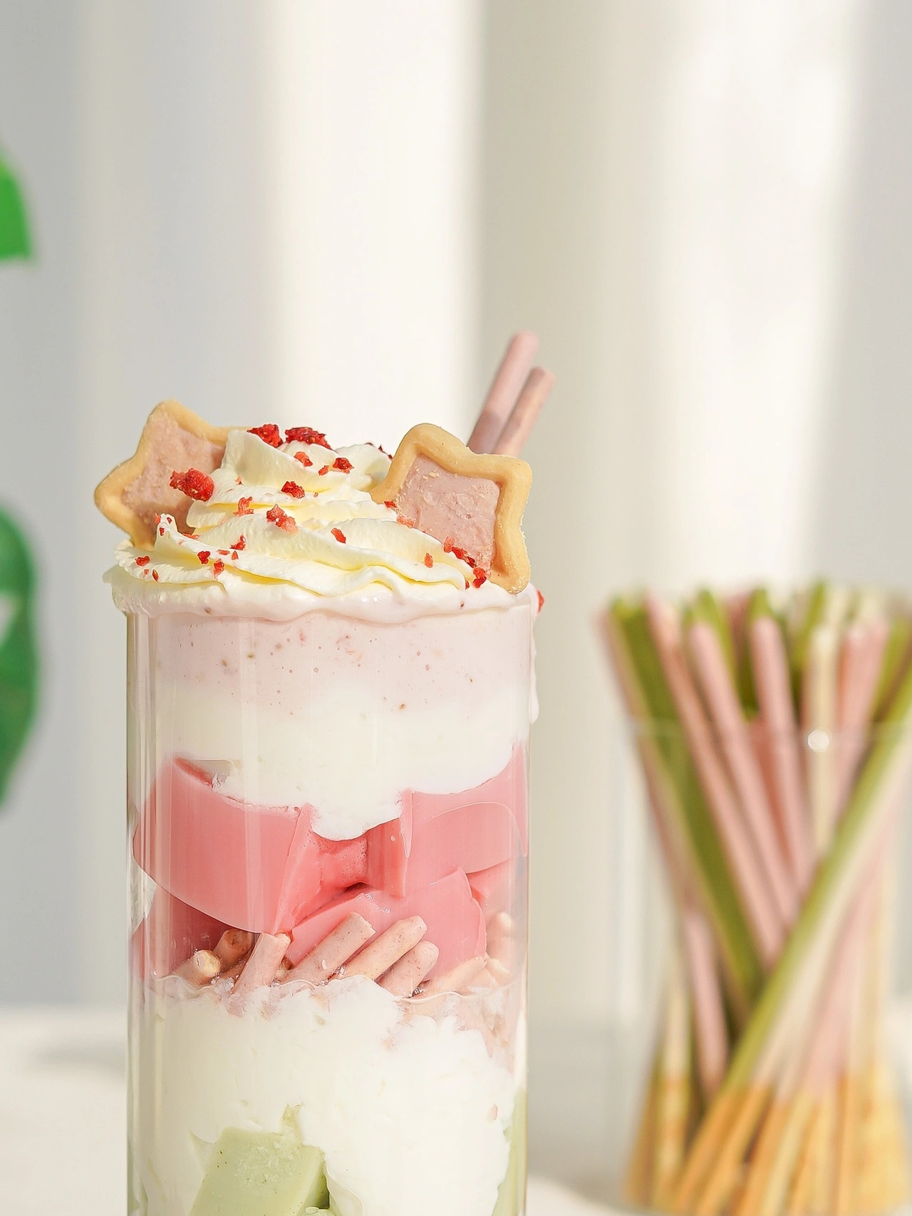 装在杯子里的草莓抹茶芭菲