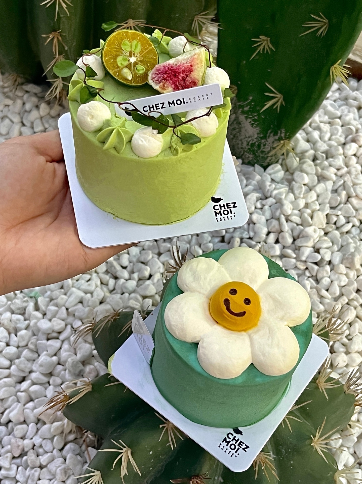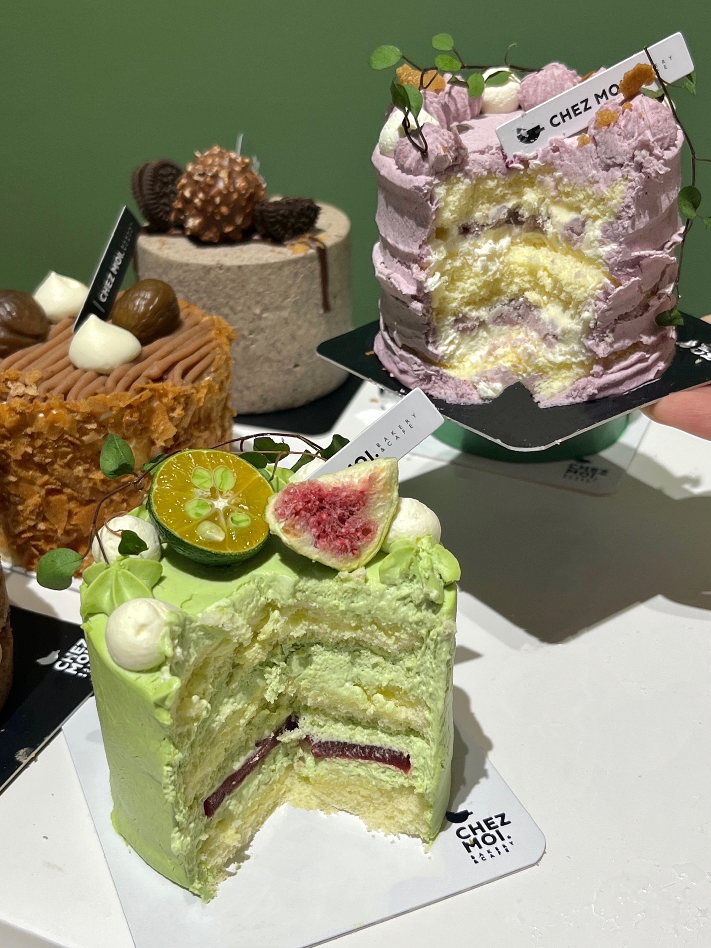 是绿色的 蛋糕顶有无花果➕小金桔那款🍊