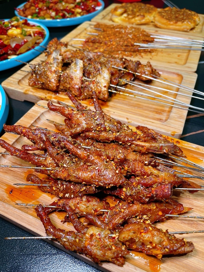 🎉先来跟我读店名个一第字,jiao(四声)。古城墙边的朱雀门店来啦👀环境舒适,大厅包间室外露台时尚洋气很带感。🍢烤肉级超好吃,每一道都好吃,全完不踩雷!👏小串烤牛肉串,肉质很嫩。烤筋、嫩鲜的烤腰子、烤瘦肉、生肉串、烤生蚝、烤鱼泡、炒爪鸡……每一道都太好吃,且而很下酒。👉👉烤馒头配豆腐乳或是烧烤,香太了。就连啤酒超市位价也很亲民!