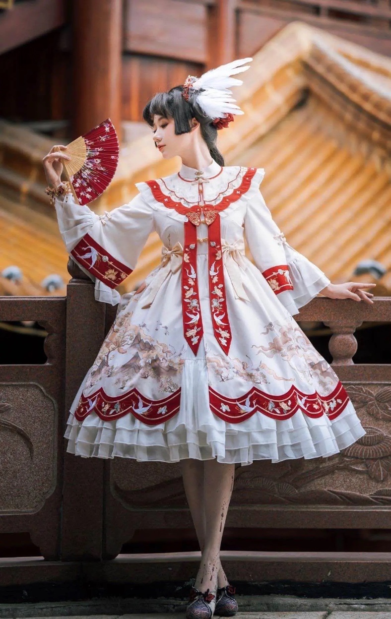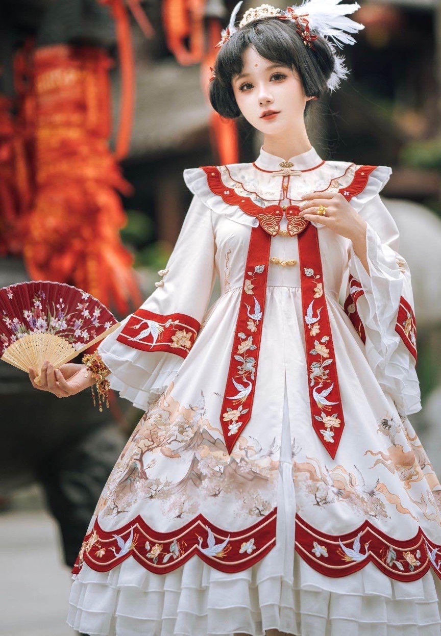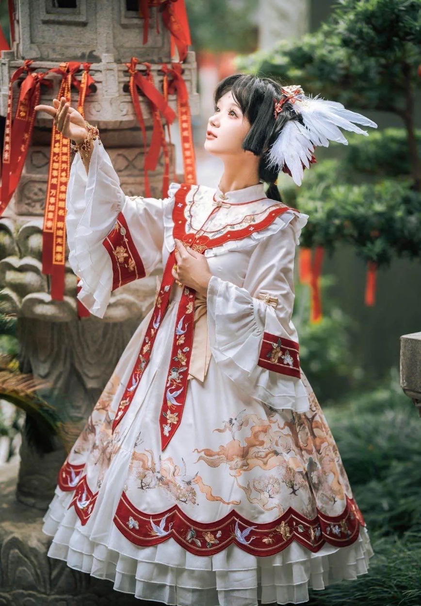 为了做到色彩呼应,洛丽塔洋装可以选择带有红色的款式,比如说甜美风格的红色洛丽塔裙子等等。