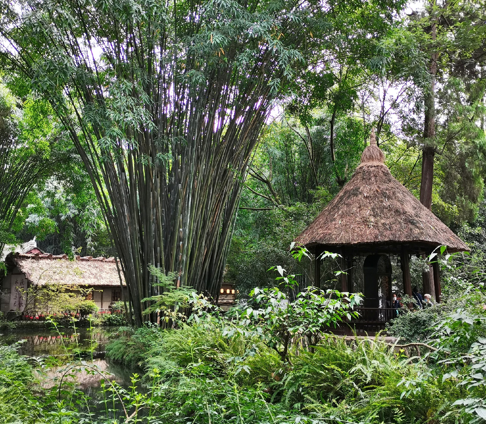 成都市西门外浣花溪畔的杜甫草堂,是唐代大诗人杜甫流寓成都的故居,“诗圣”在此居住近四年,将人生四年的积淀化作了240首不朽的诗篇。(1)