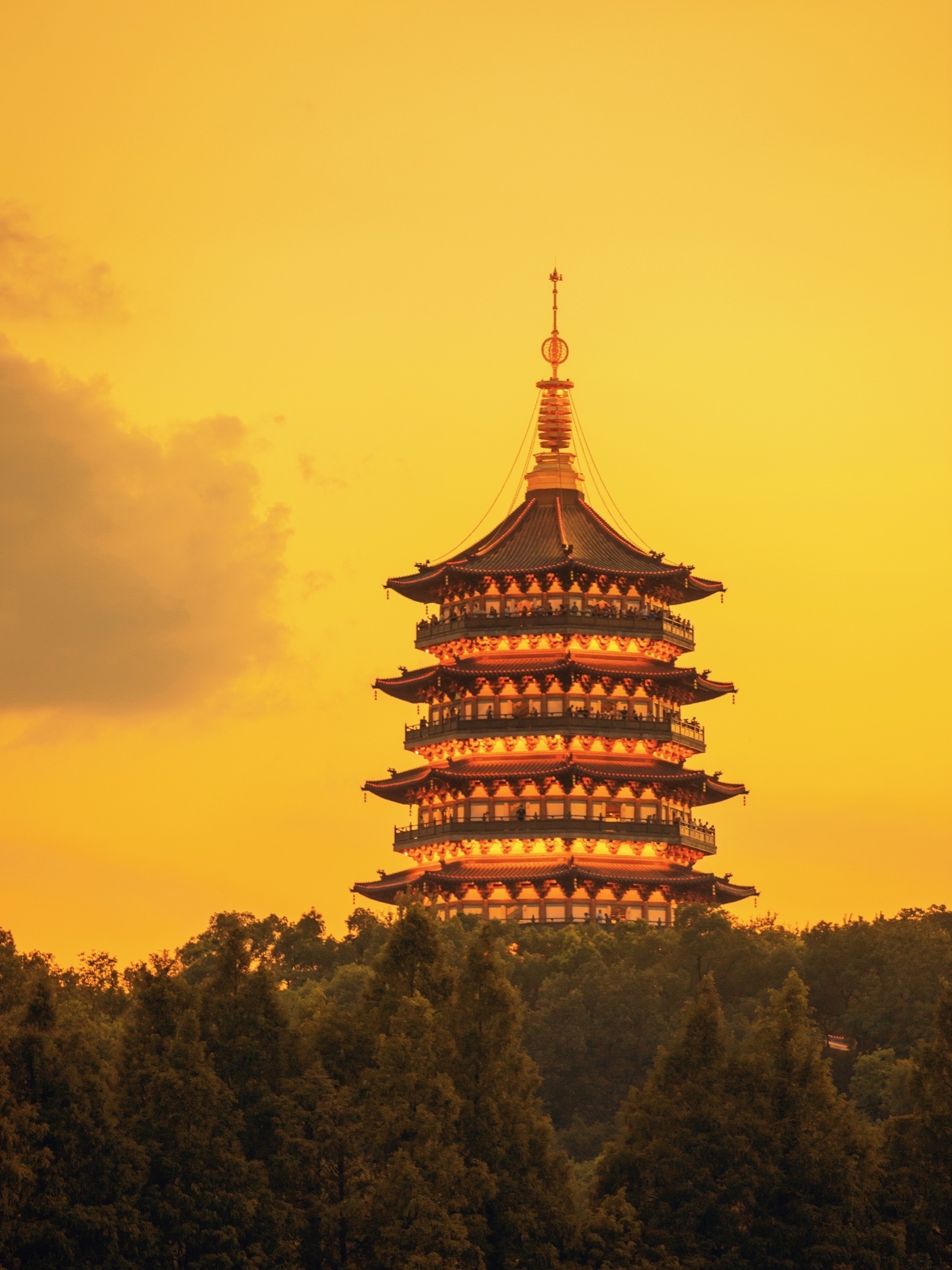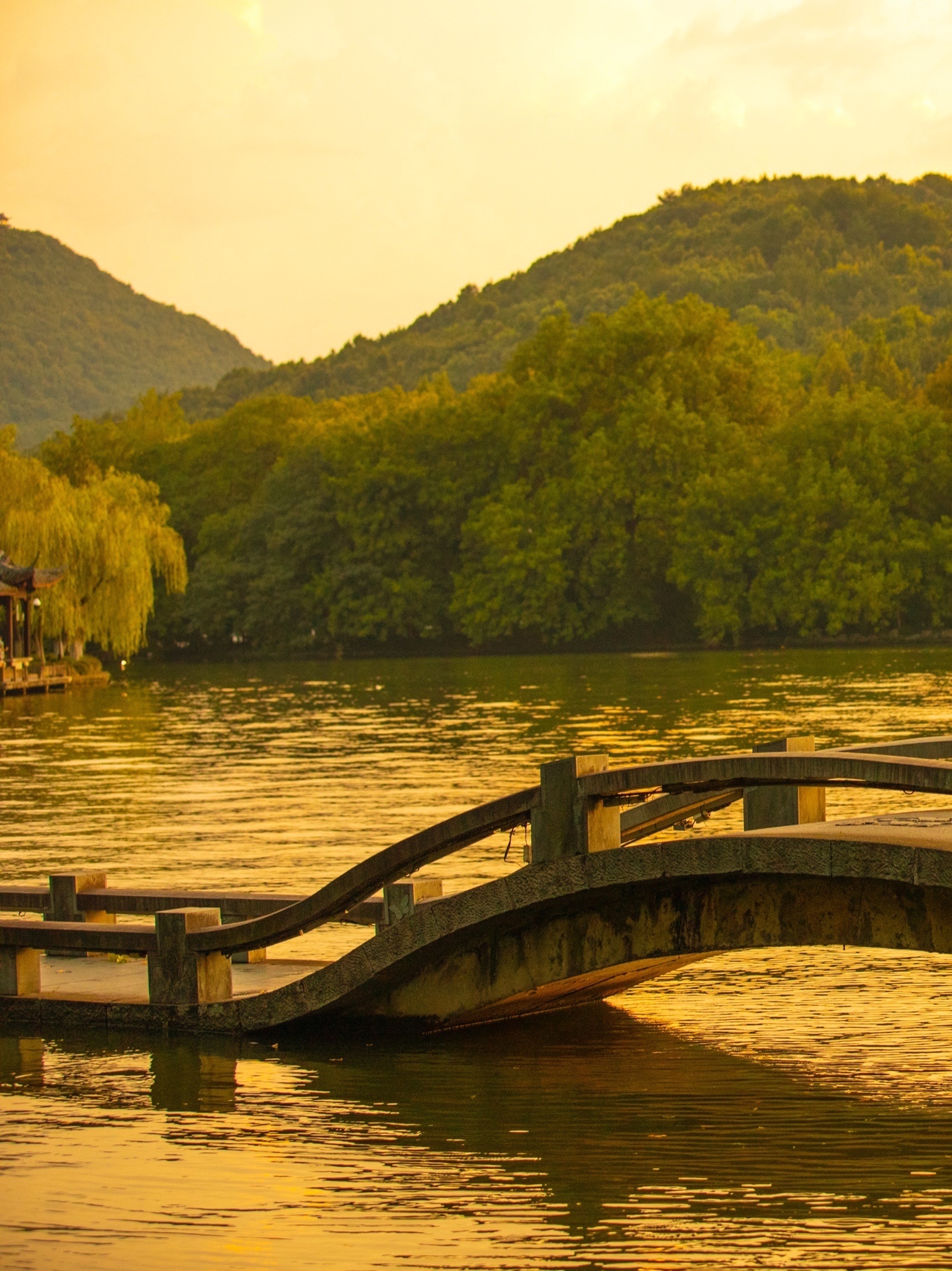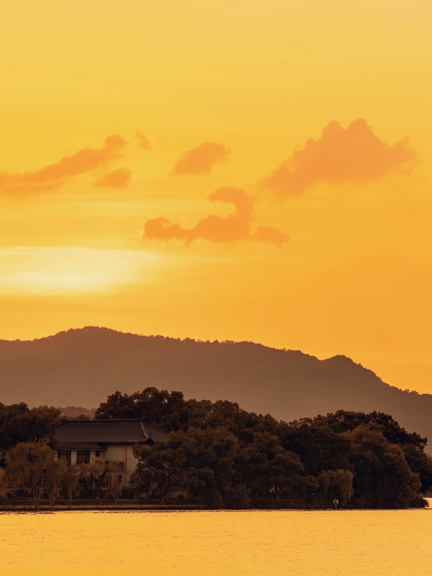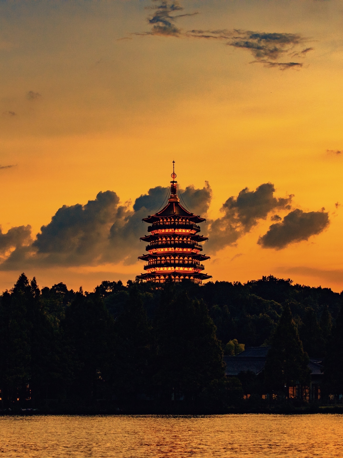 夕阳、古塔、远山、湖面、云、断桥,单是这些画面堆积在一起就很有意境了,而在西湖,这些画面可以巧妙地搭配起来,浑然天成。上有天堂,下有苏杭这句话一点没错!