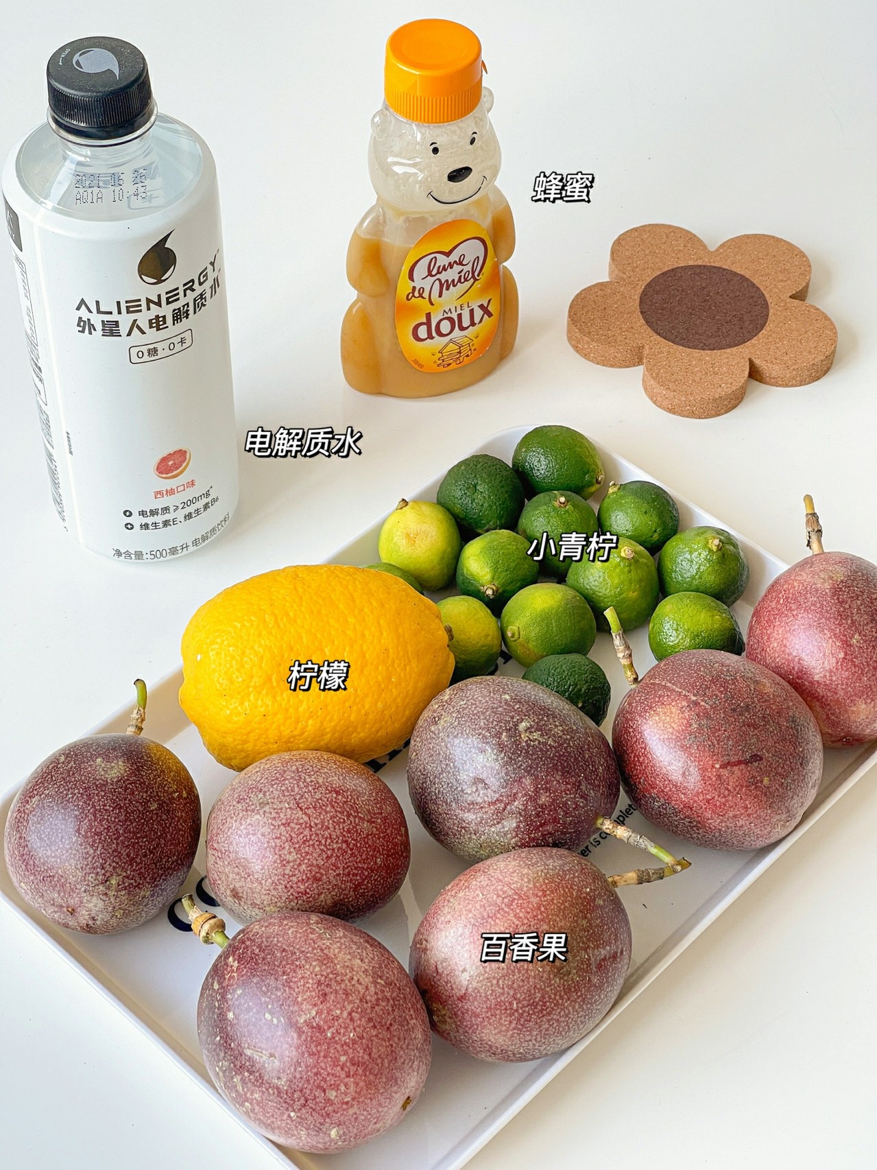柠檬、小青柠、百香果、蜂蜜、外星人电解质水