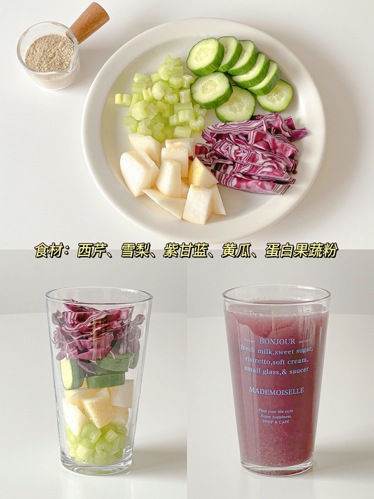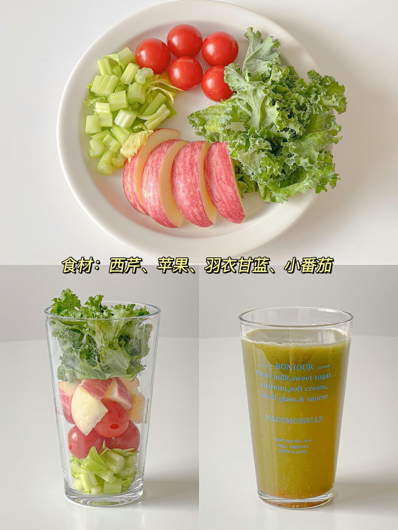 把蔬菜水果洗干净,可以加一点食盐浸泡消du,切成小块放在榨汁机中,倒入3OOml纯净水,榨3O秒搞定!