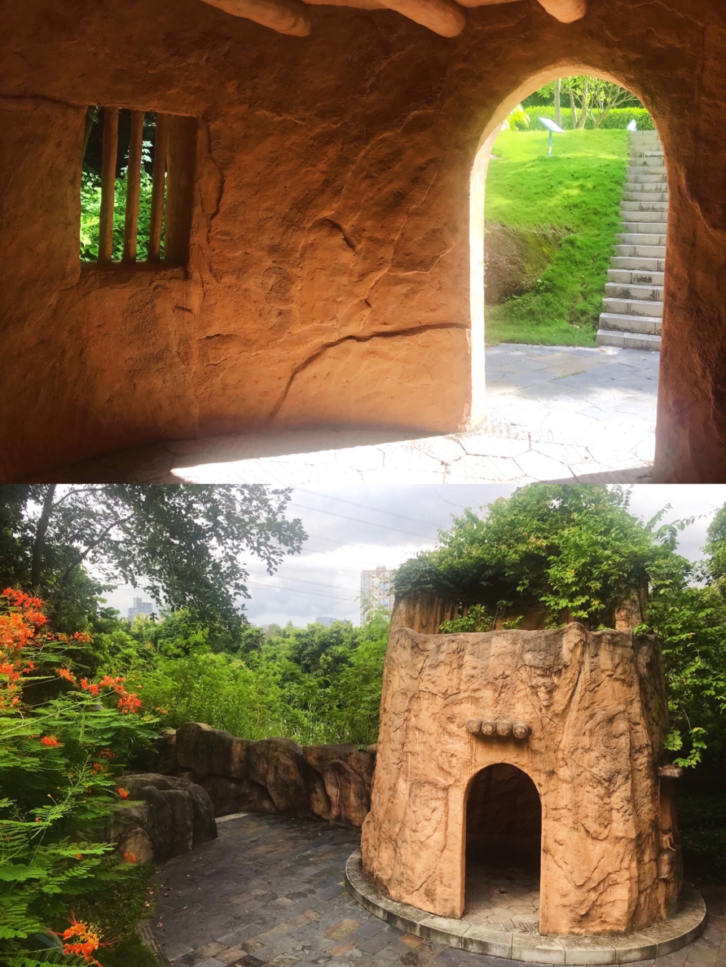 💚作为园区入口的标志物,『蚯之丘』模拟的是一个放大的蚯蚓洞,它隐喻着生物对水土的依赖。阳光明媚的时候光影 绿植 洞洞 光斑交织的和谐景观。