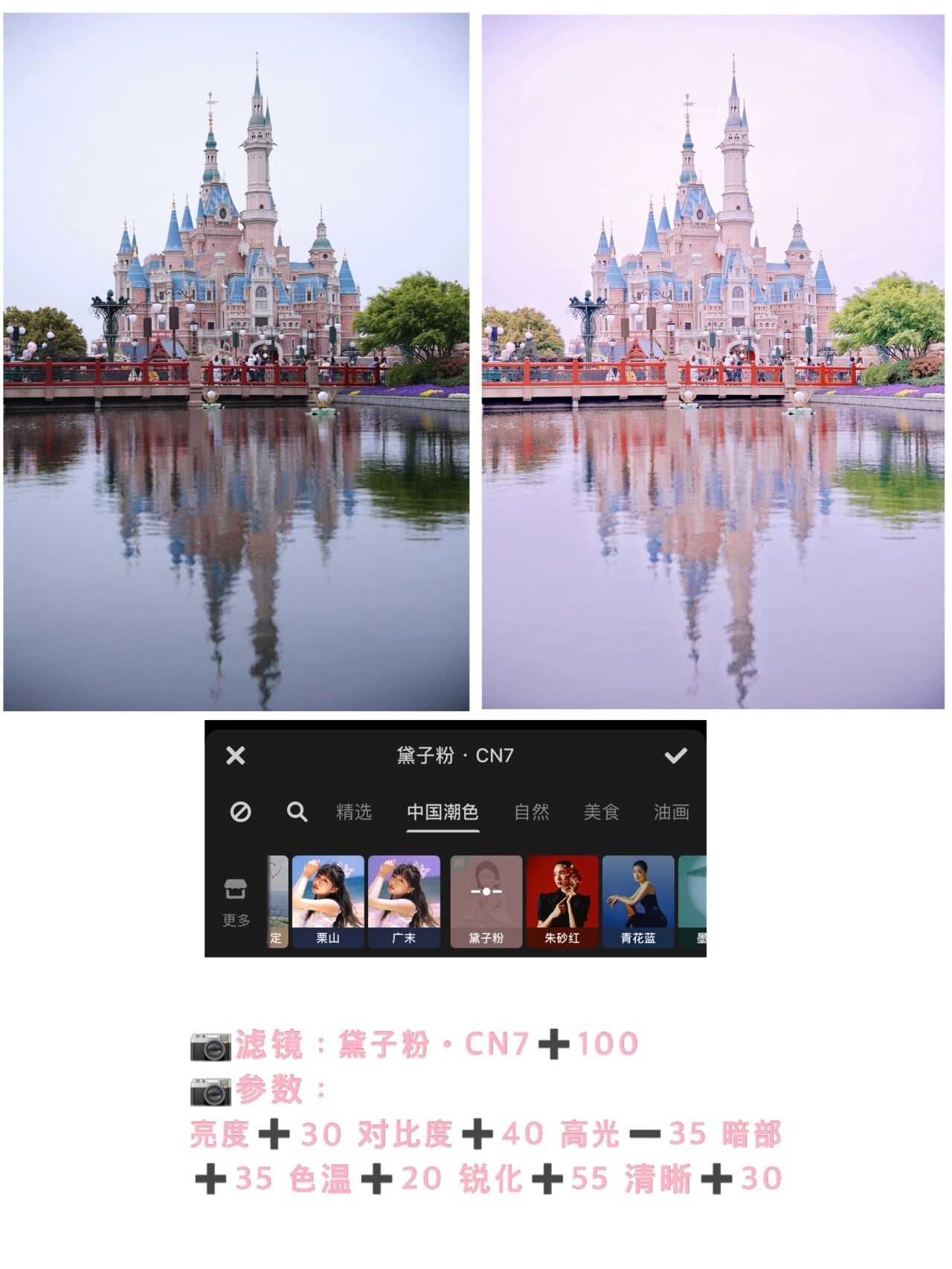 这个滤镜,我愿称之为迪士尼专属童话滤镜!粉粉的,调色之后好梦幻!