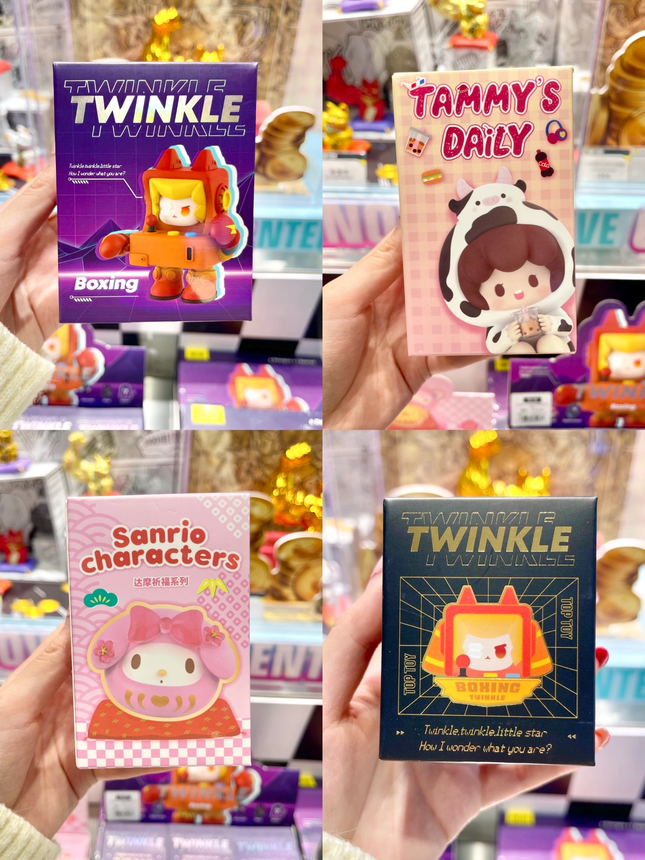 这家店品类超级多!盲盒、手办、拼装高达、积木、娃娃模型、雕像应有尽有!以及TOP TOY独家原创IP!-1⃣️TWINKLE街机系列盲盒六款常规+一款隐藏.2⃣️TAMMY的日常系列盲盒宅女形象做得特别可爱,尤其是坐在甜甜圈🍩上的太喜欢了💕.3⃣️三丽鸥达摩祈福系列盲盒这款造型应该没有女生会不喜欢吧,一共有9款/代表8种运势,凭运气看看你能抽到哪一个运势~-除了女孩子们喜欢的盲盒🎁也有男孩子喜欢的手办、拼装高达、积木、雕像,细节做得特别好!精致又好看,买来自己玩或者当礼物送人都很不错~