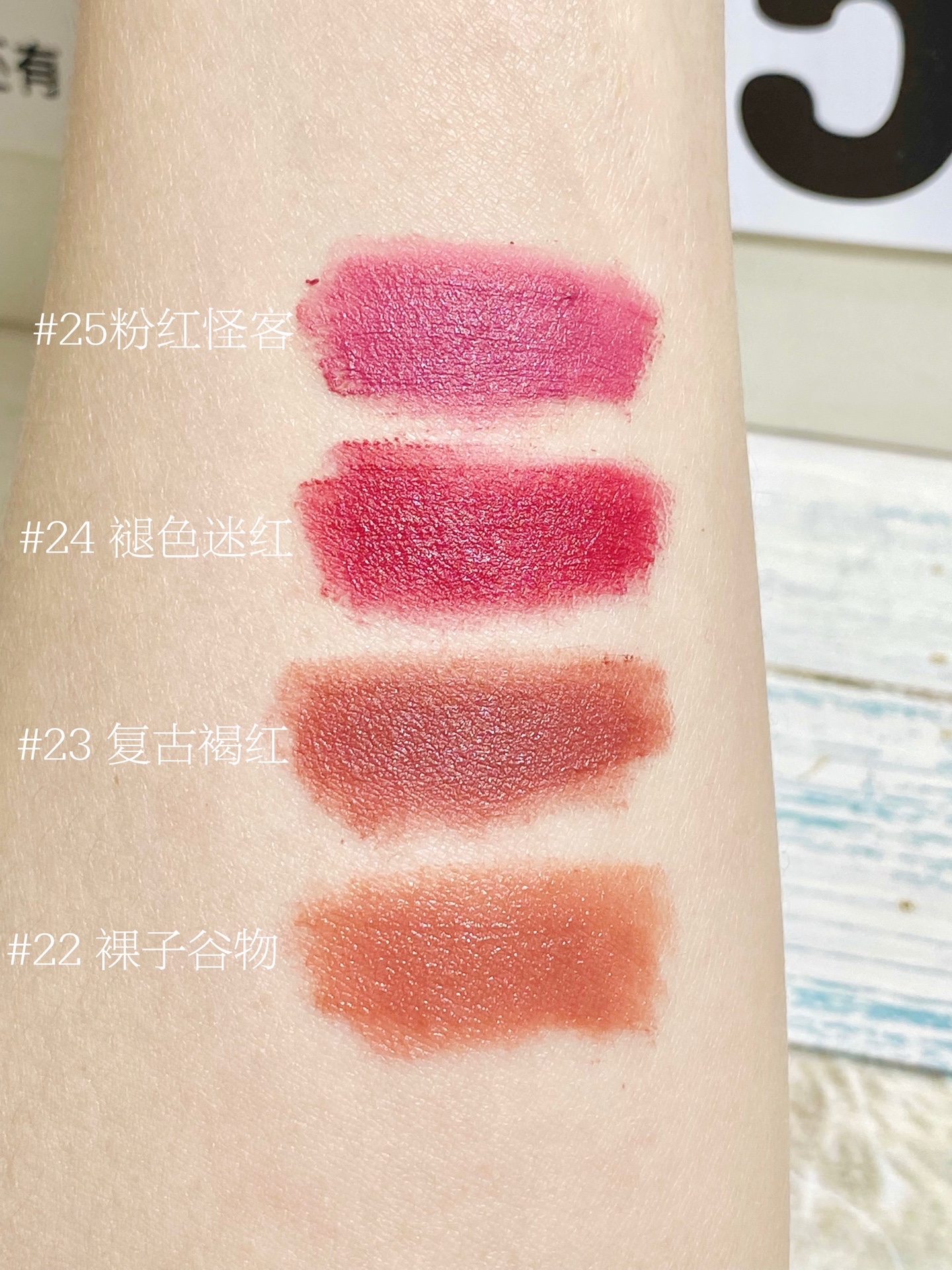 这支我个人觉得白皮妹子会比较适合一点啦,它是低饱和紫调干枯玫瑰色,也是敲级美的~