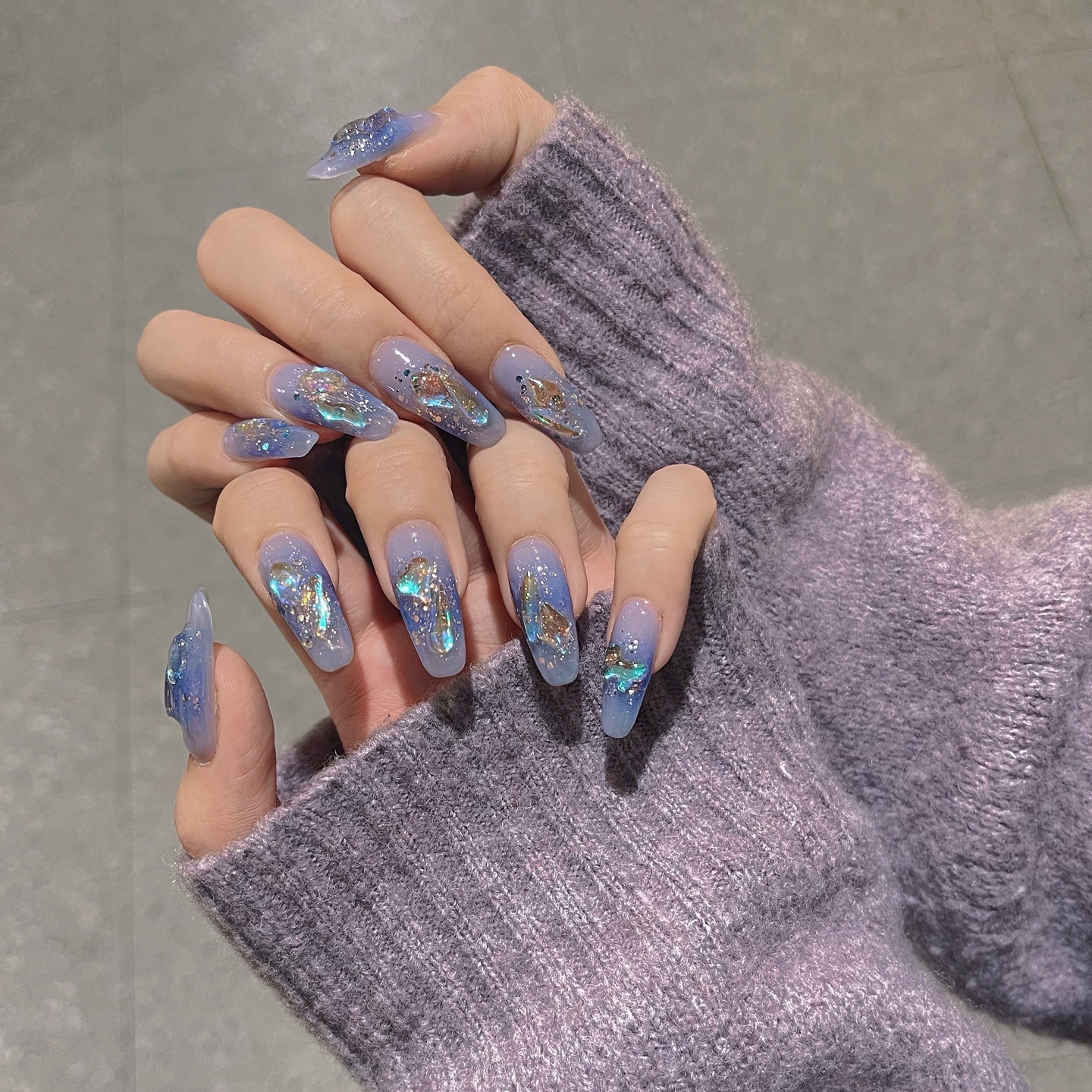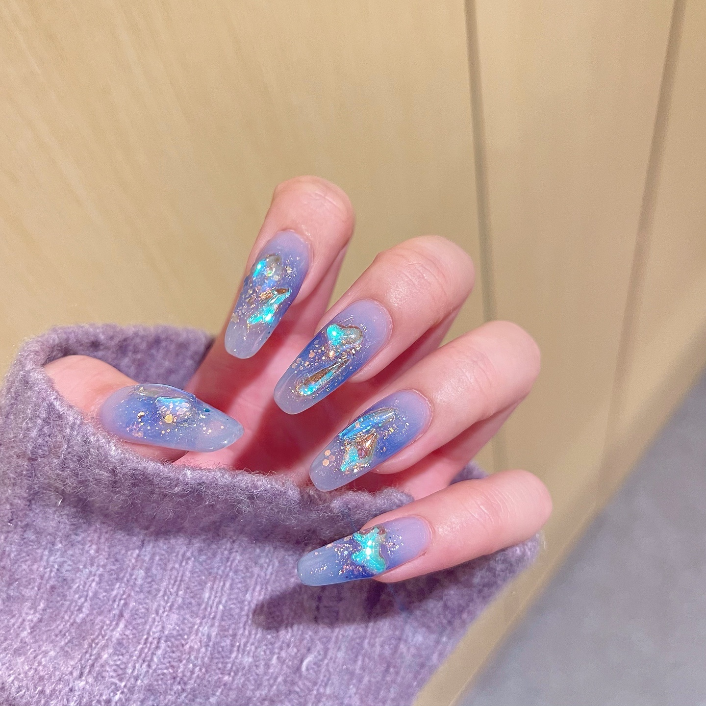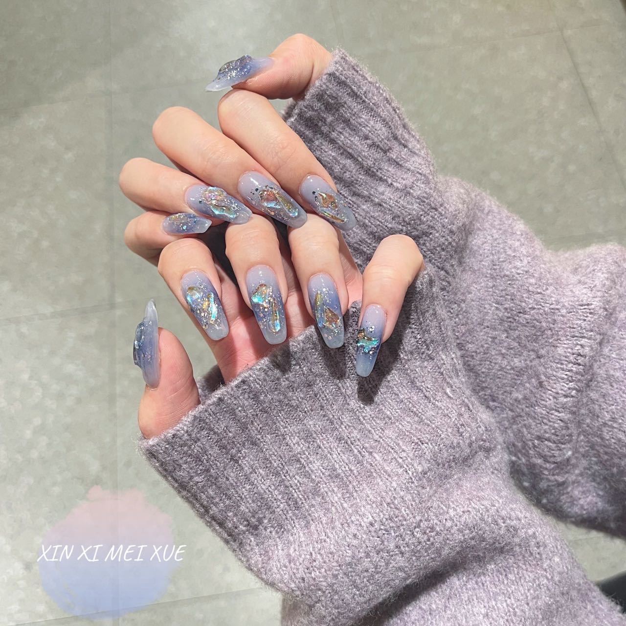 钻石冰雪蓝美甲巨显白的蓝色!闪到眼瞎!冰雪蓝➕异形极光钻➕极-美图社区-美图秀秀