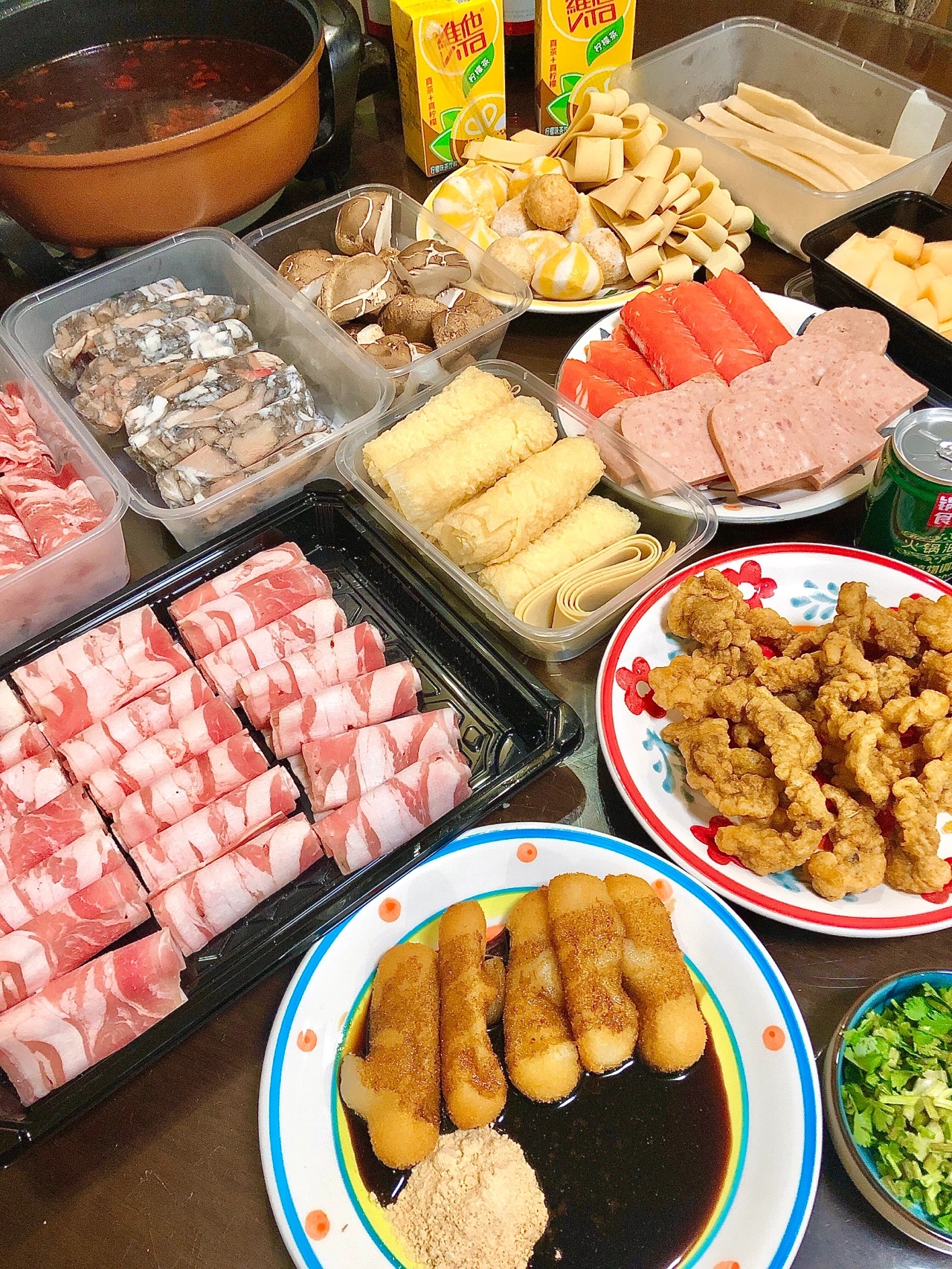 肉类:🐂肥牛卷、肥羊卷、乌鸡卷、午餐肉