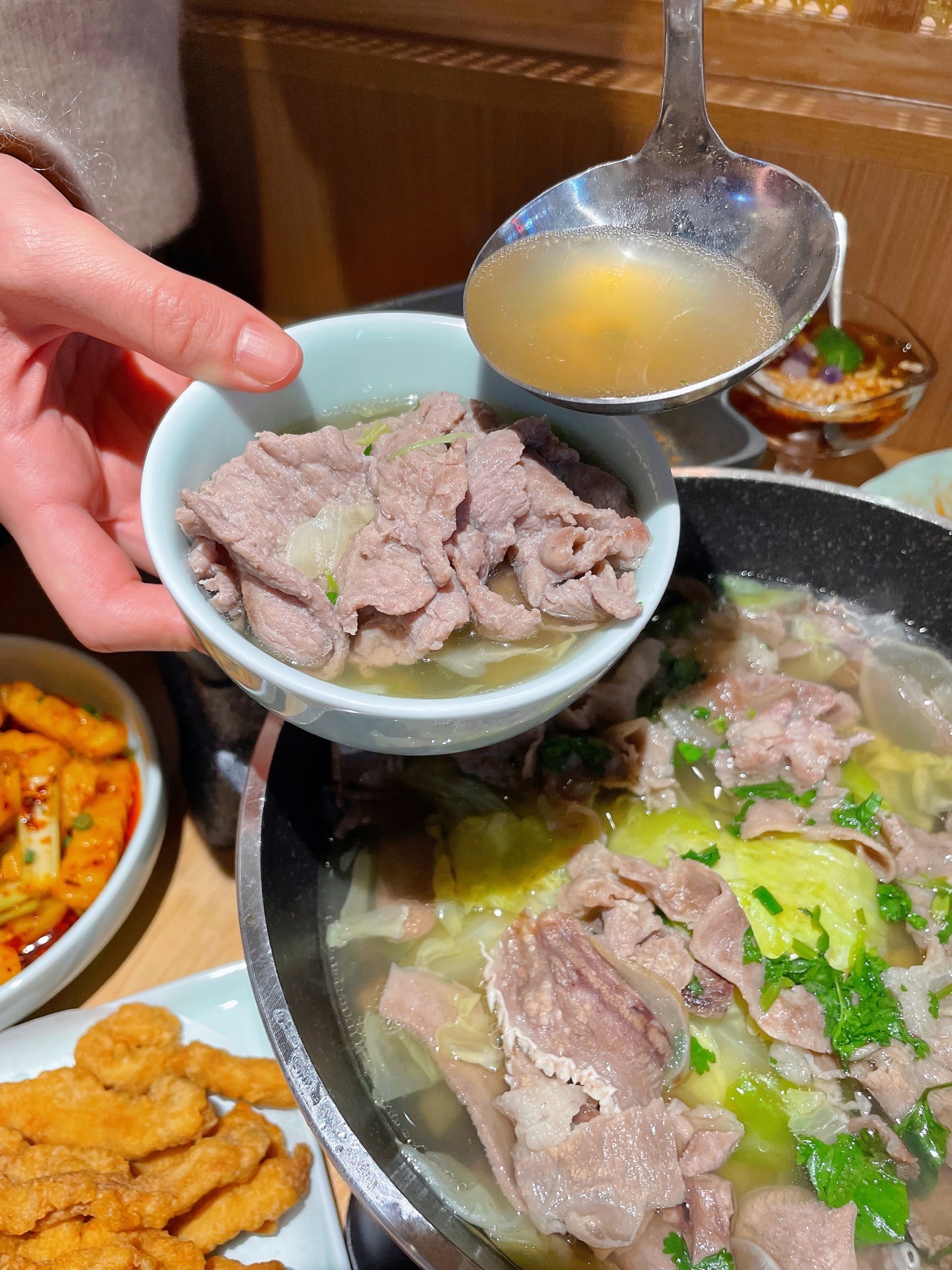 汤底是灵魂⭕️汤色清亮🥣,每天现切现卖的新鲜牛肉,牛肉切成薄片🥩鲜嫩可口⭐️