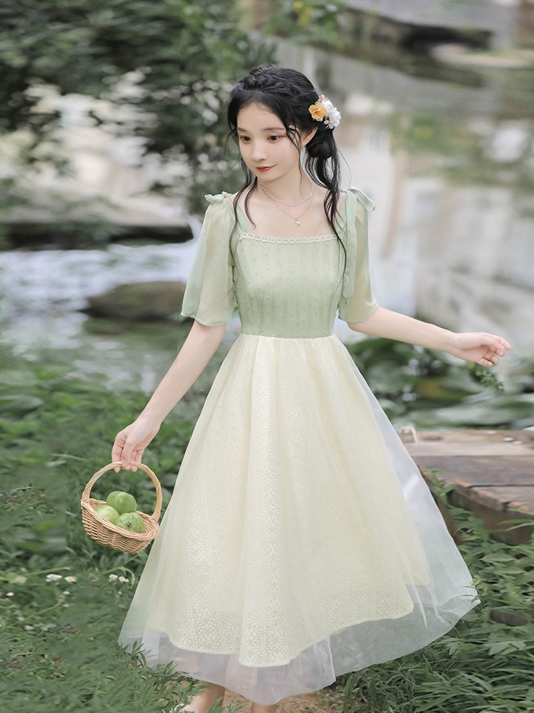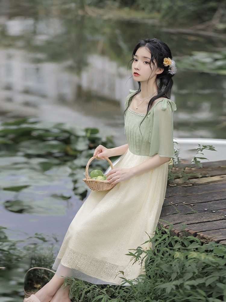 国风连衣裙复古蕾丝吊带仙女裙