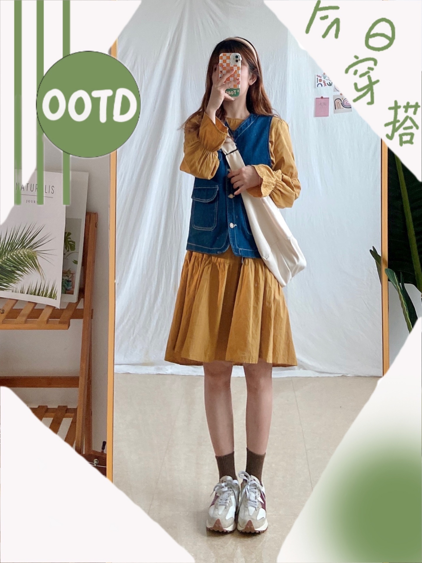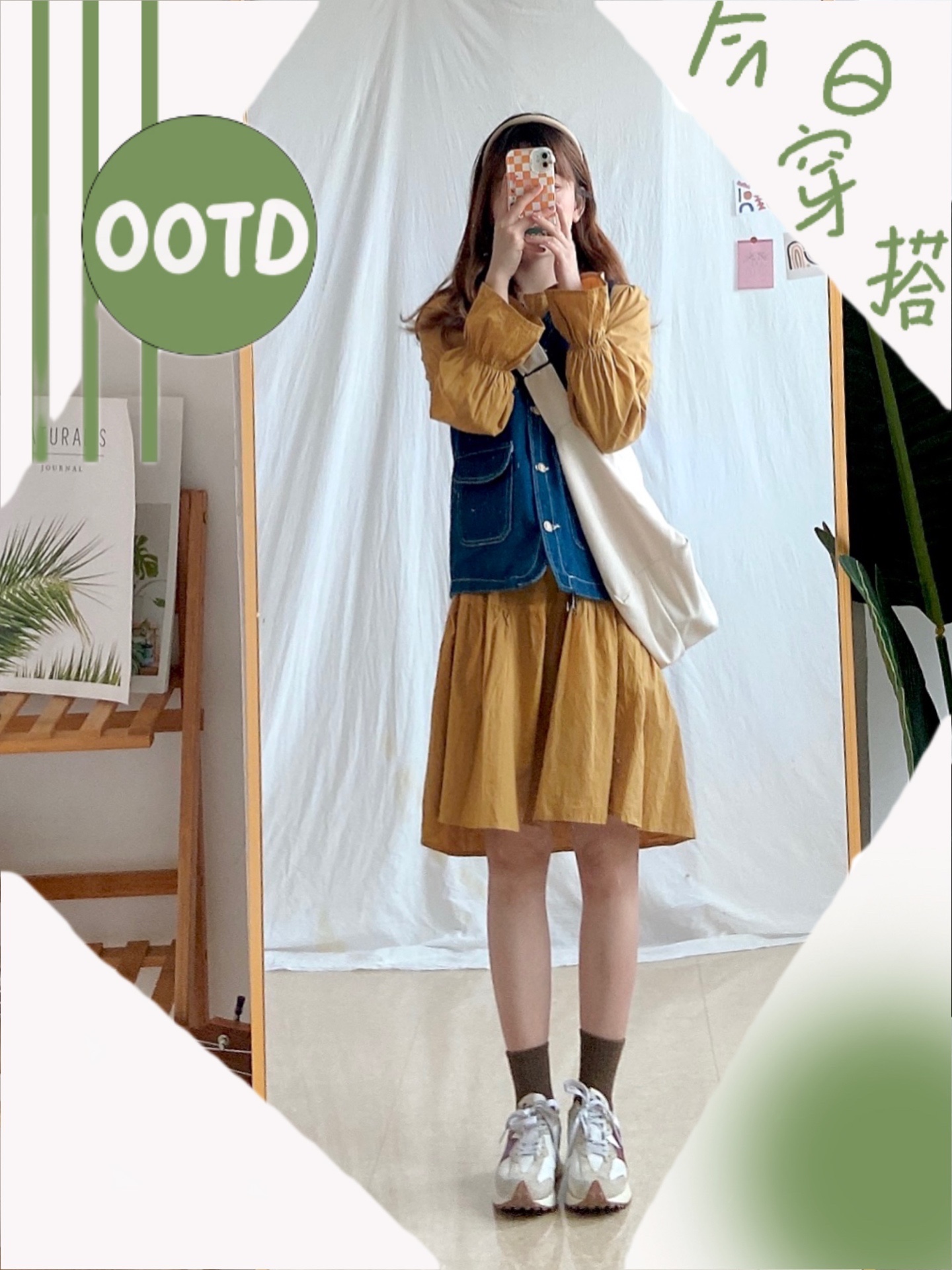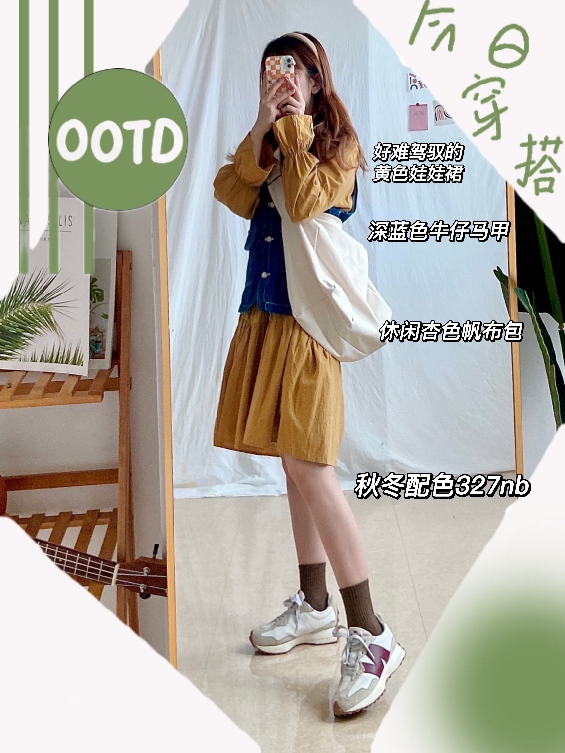 今天第一次穿 实属难搭 土黄色娃娃裙
