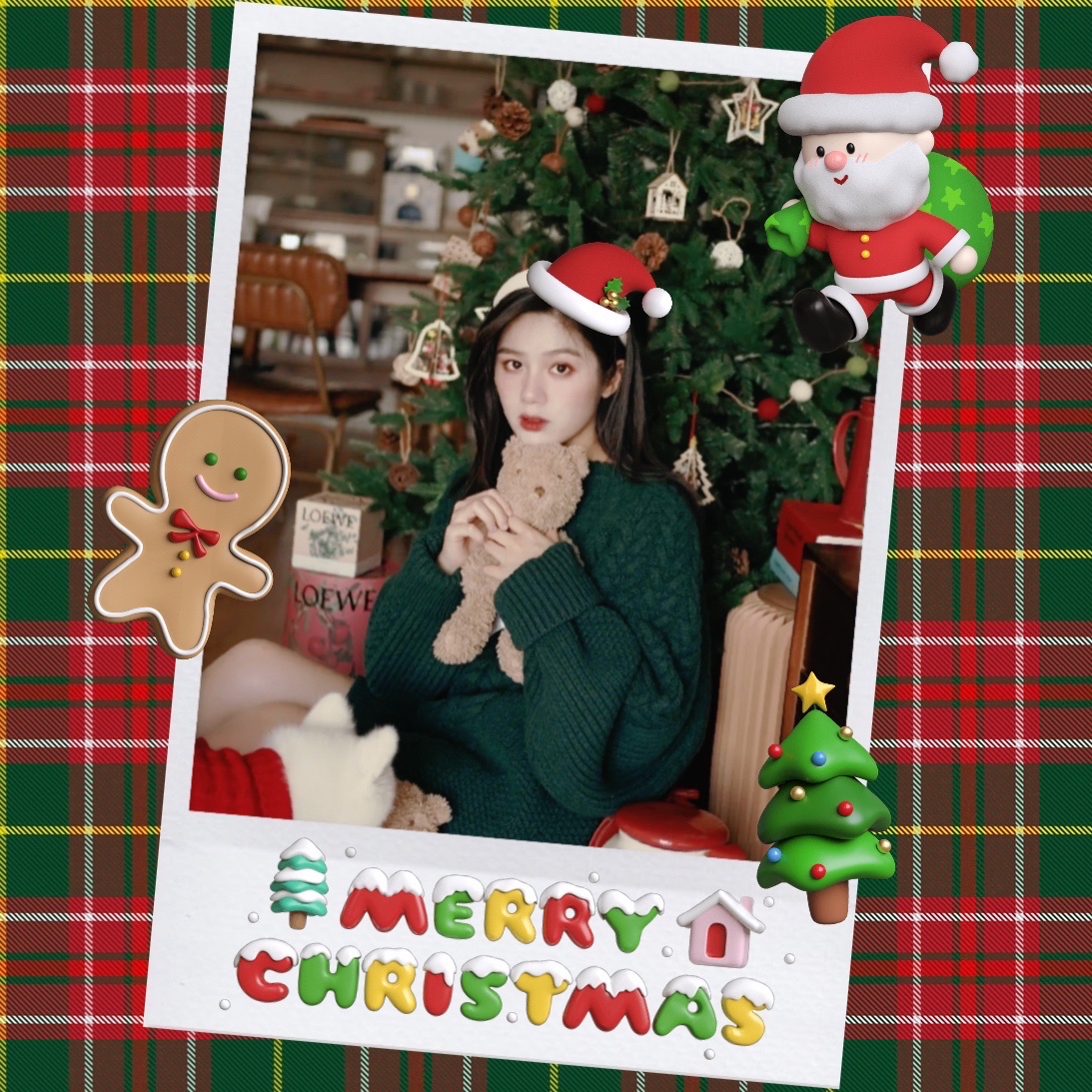 圣诞立体3D拍立得|红绿格纹背景|苏格兰风格模特:雄晓盈-美图社区-美图秀秀
