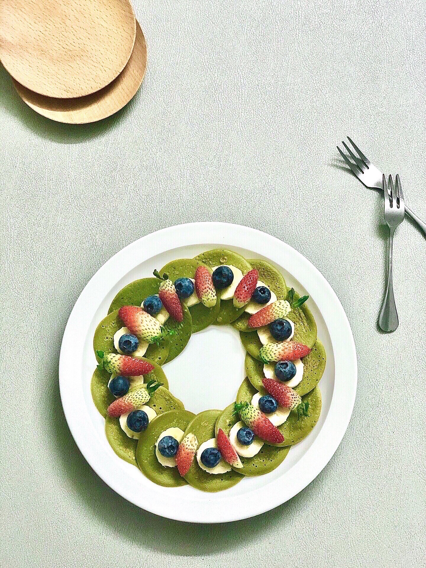 大家早呀!今日份早餐是【抹茶花环松饼】🥞做法🥞1⃣️准备-美图社区-美图秀秀
