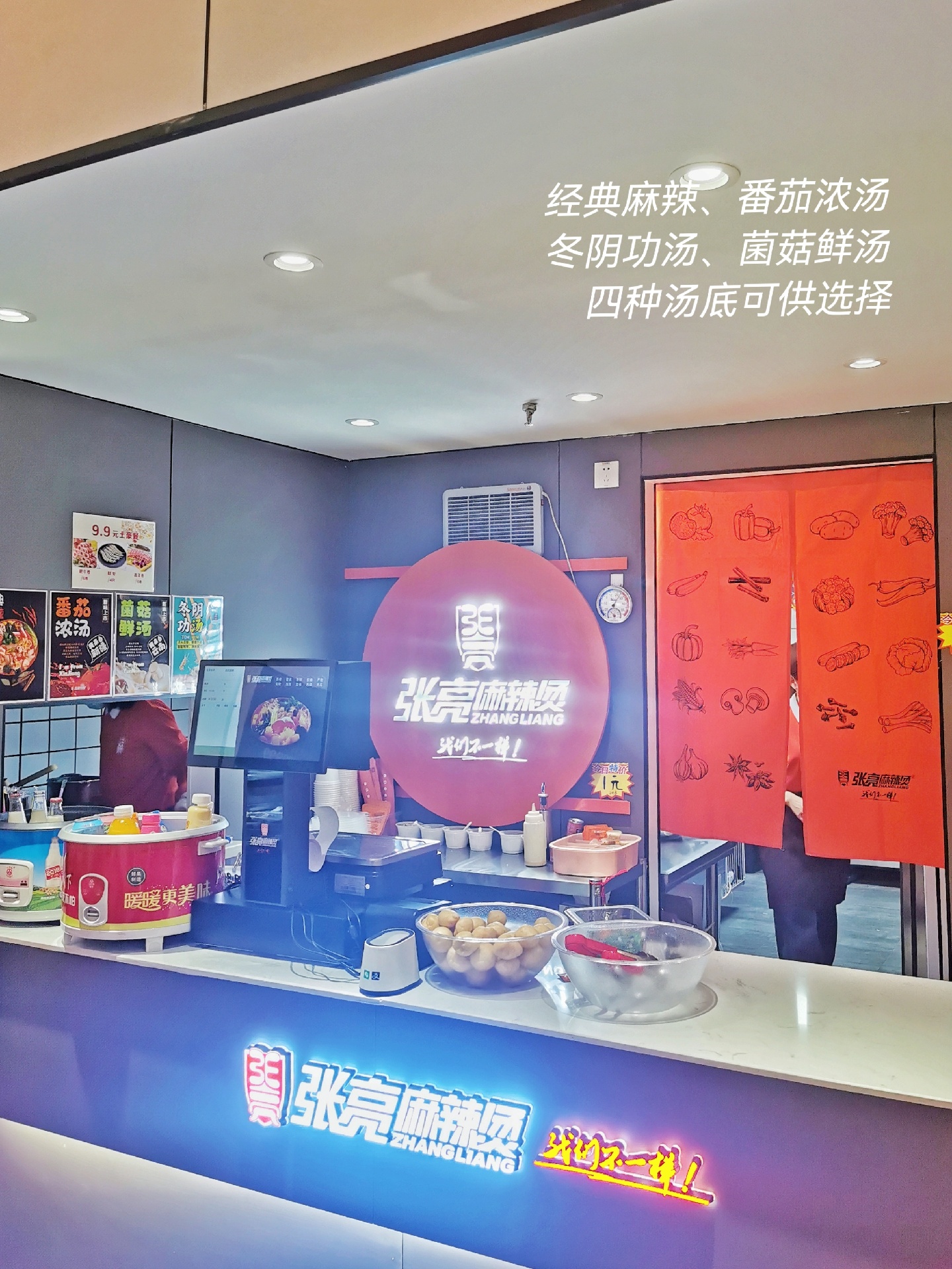 张亮麻辣烫的汤底很不错,有经典🌶麻辣、番茄🍅浓汤、菌菇鲜汤、冬阴功汤。喜欢吃辣的我们,因为近期需要戒辣,就选择了番茄和菌菇。