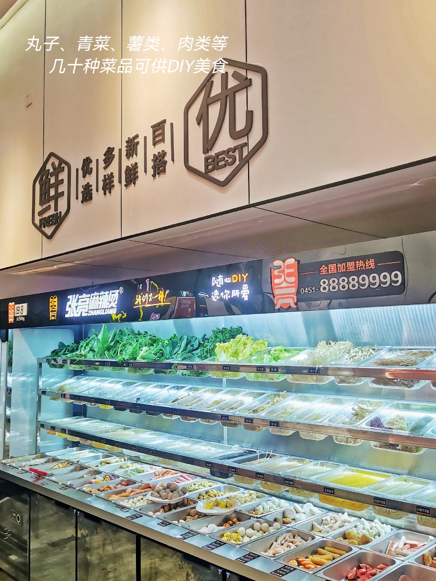 闲暇时间,吃份DIY的张亮麻辣烫🥘,还是挺舒服的💕。麻辣烫菜品种类的多少,我觉得很重要的。各种青菜、丸子、肠、薯,面都有十多种,确实够丰盛的。