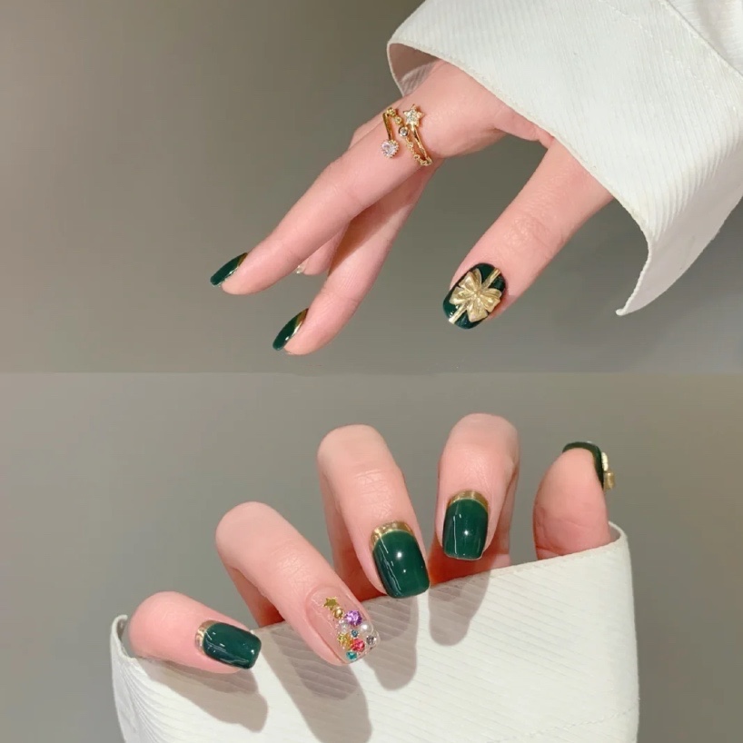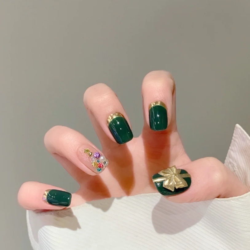 🎁美甲教程:敲显白气质的圣诞绿,暖光下会有点翡翠绿,怎么说-美图社区-美图秀秀