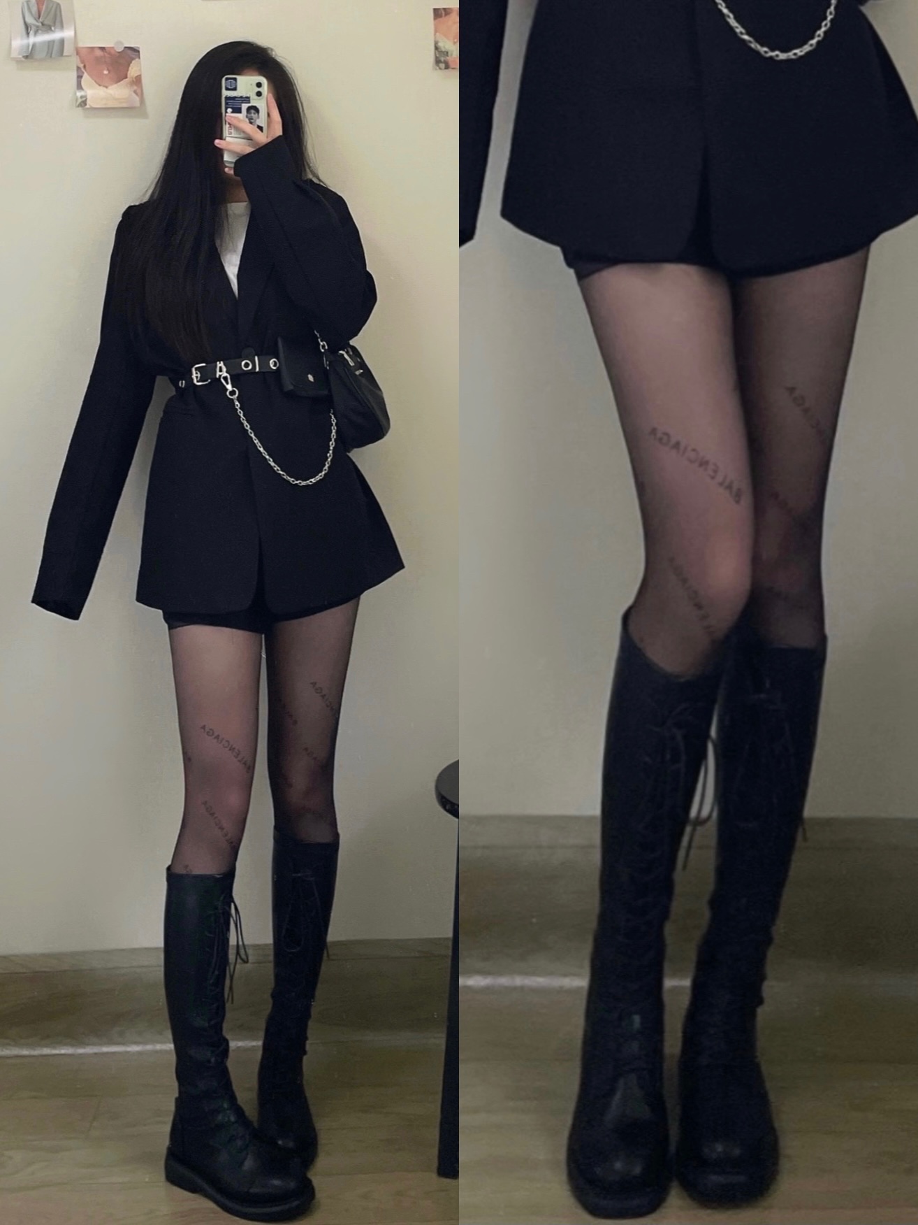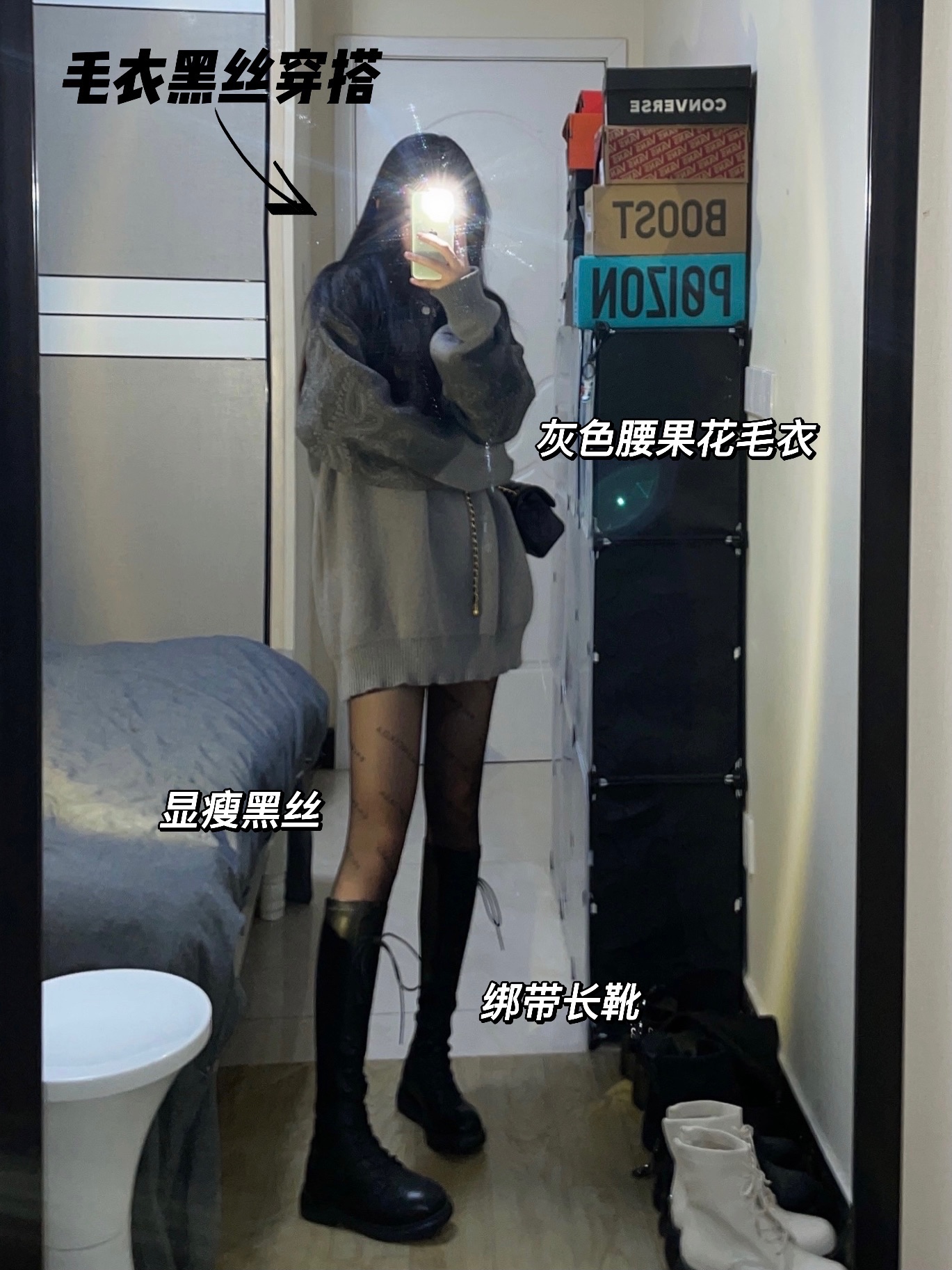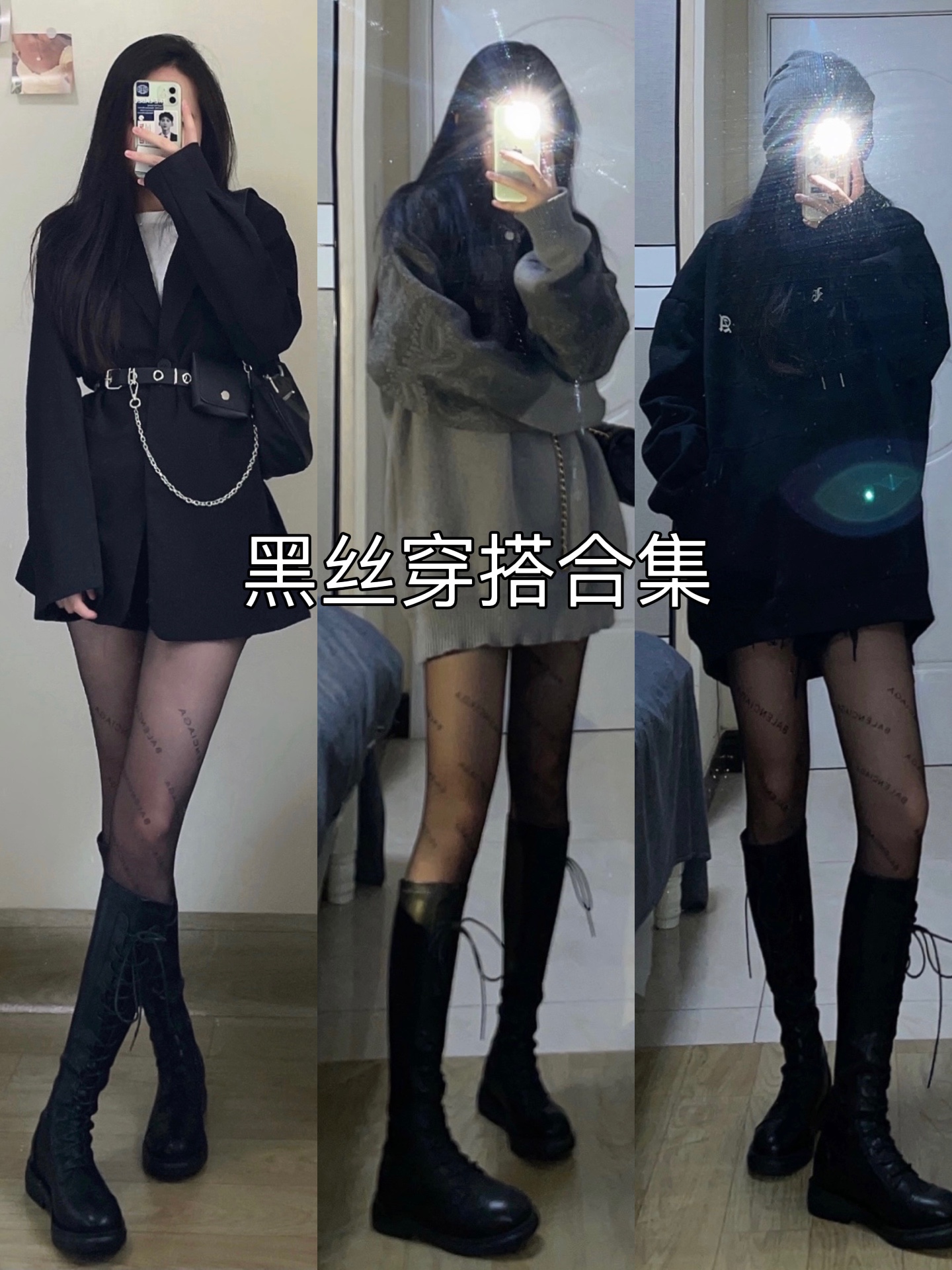 毛衣、西装、卫衣、大衣、裙裙~感觉没有什么是黑丝搭不了的 而且搭配长靴穿hin显瘦~!!