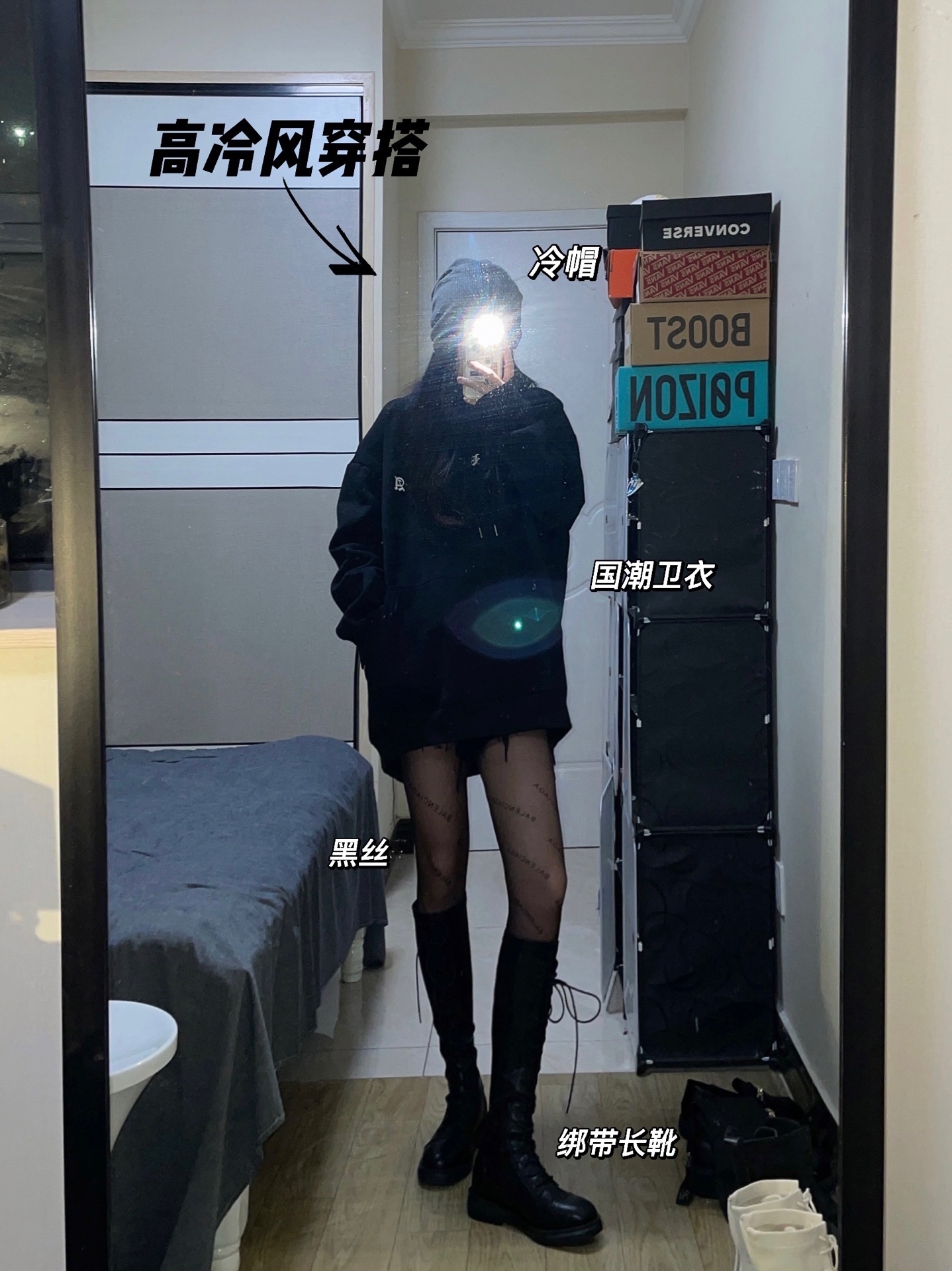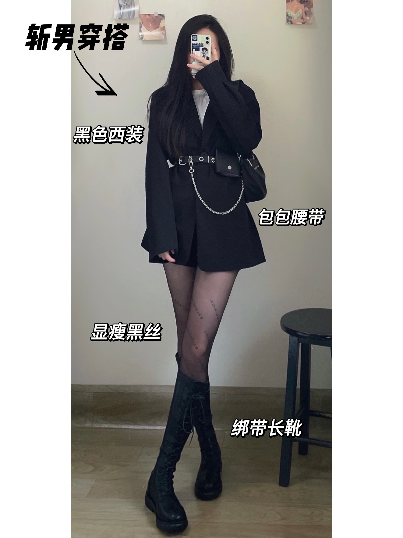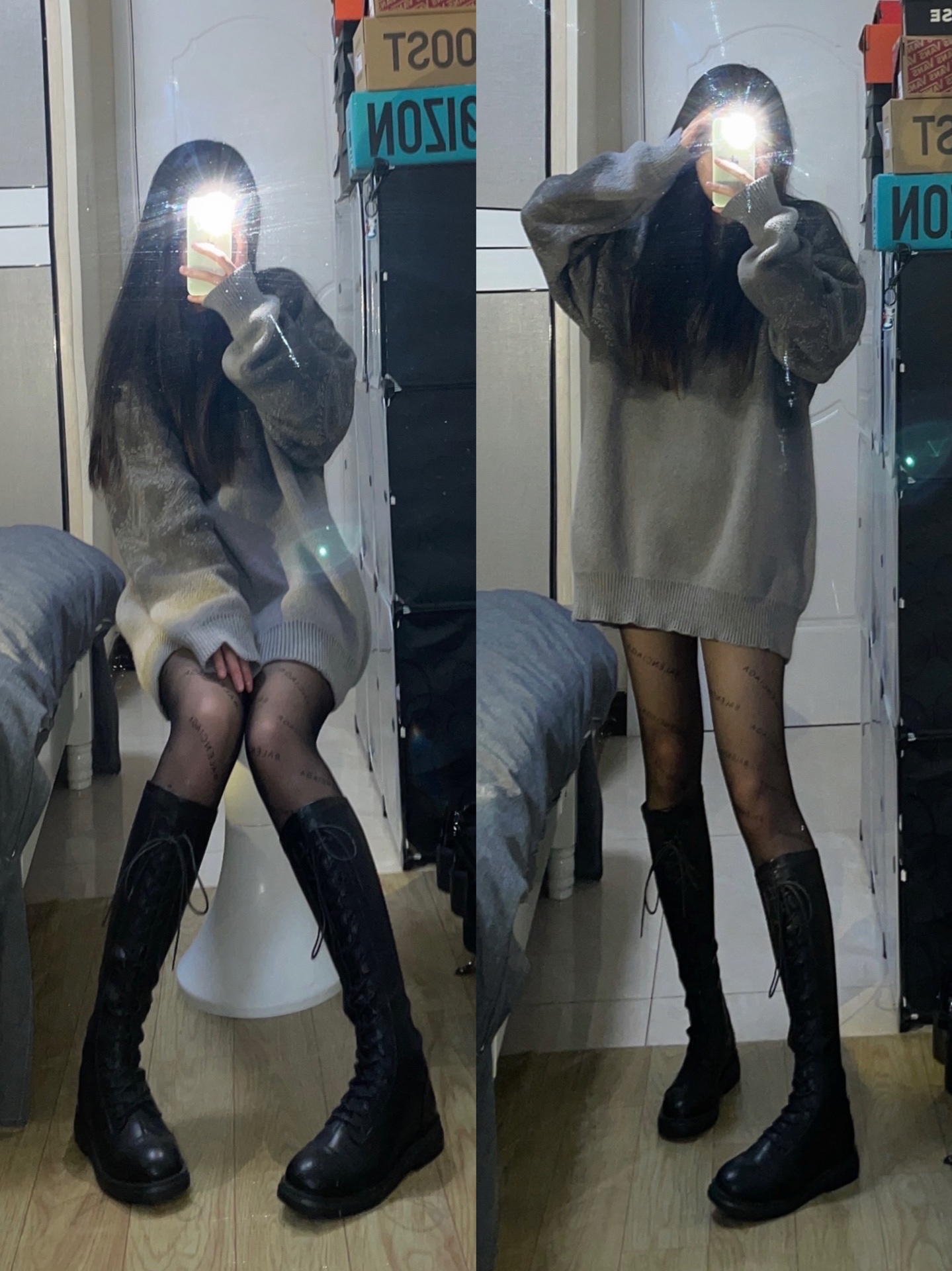 毛衣、西装、卫衣、大衣、裙裙~感觉没有什么是黑丝搭不了的 而且搭配长靴穿hin显瘦~!!