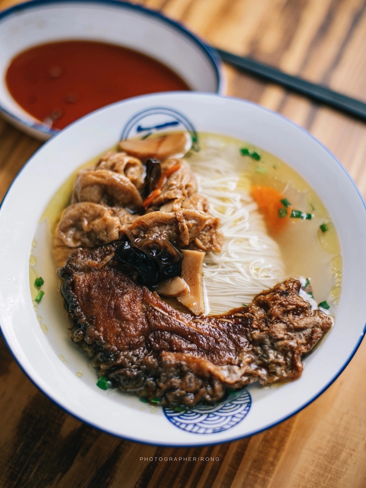 🌞中午来一碗,新万鑫银丝面馆的面🍜,有鸡汤做底汤,配上一叠小菜。