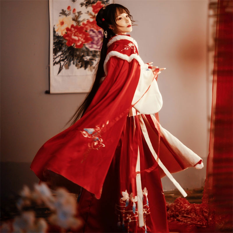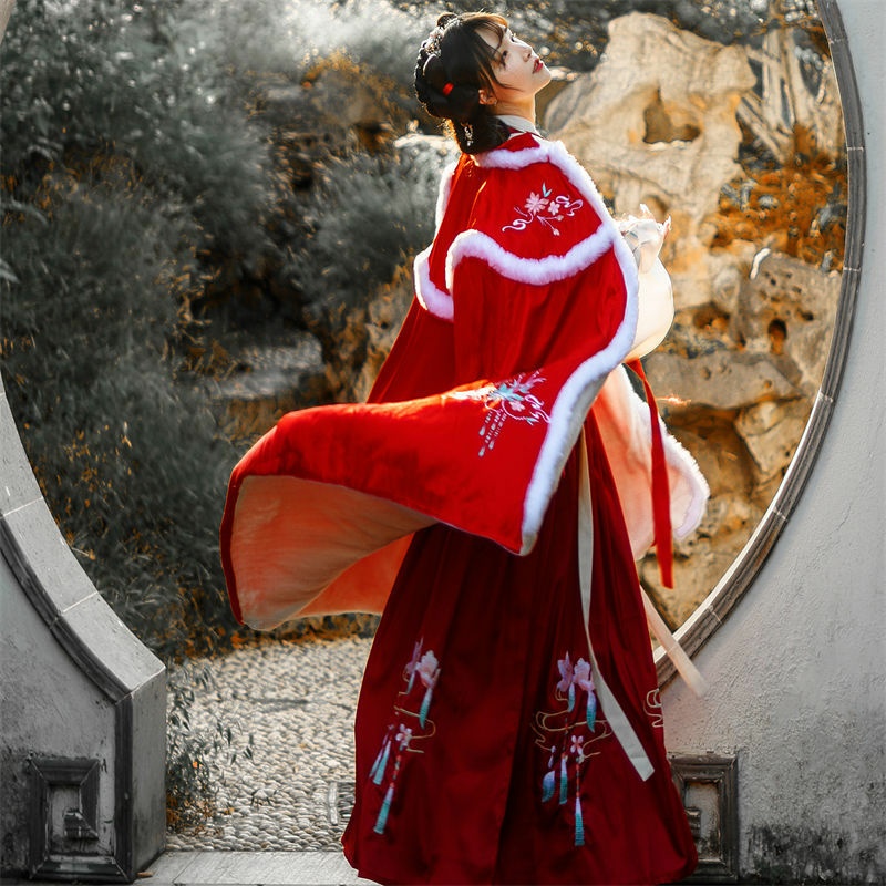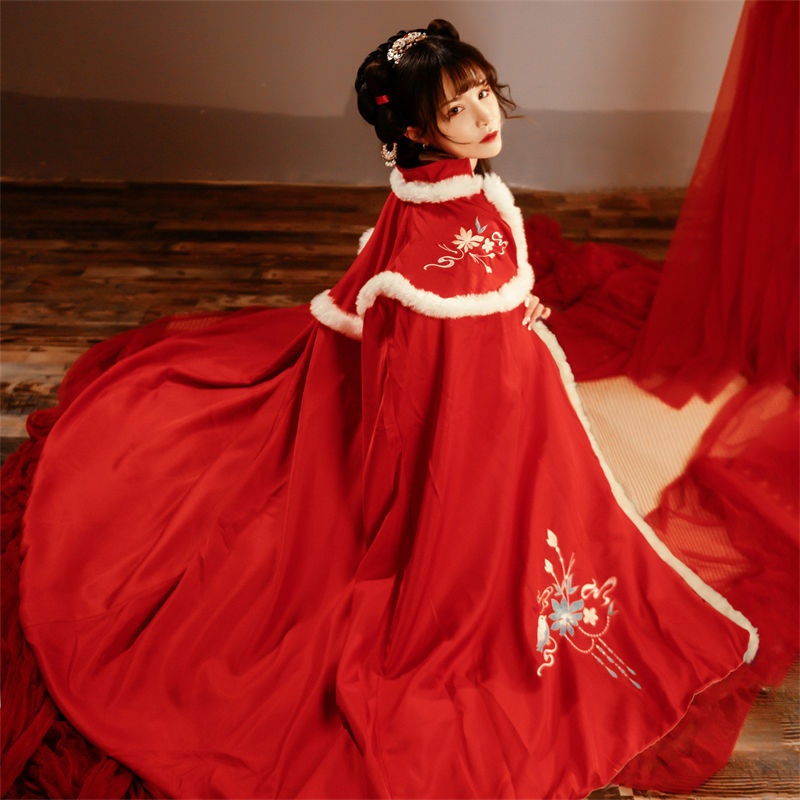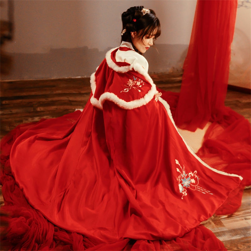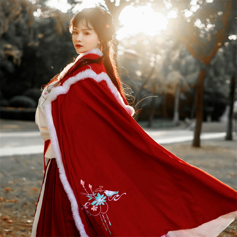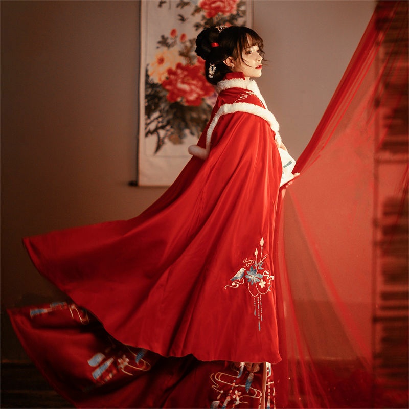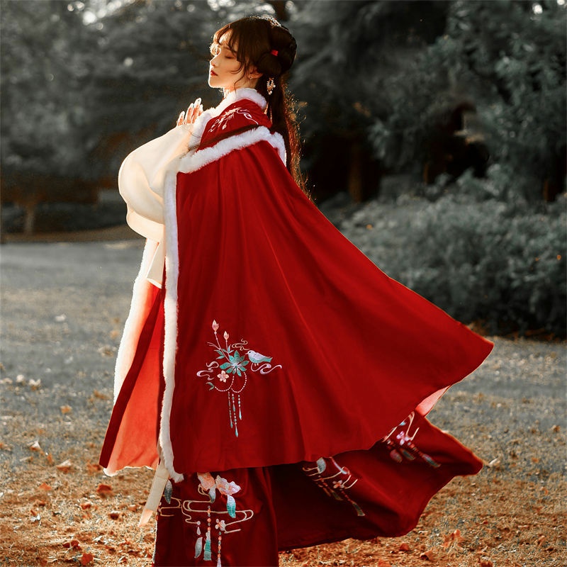 昙翎鸟汉服斗篷加绒加厚保暖披肩外套中国风超仙气秋冬款披风古装