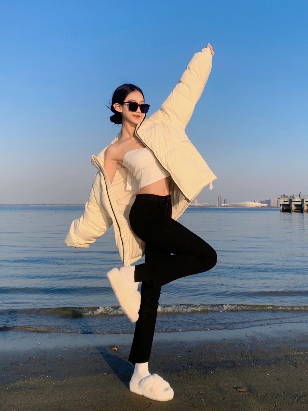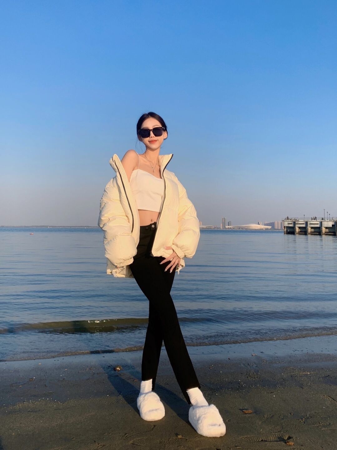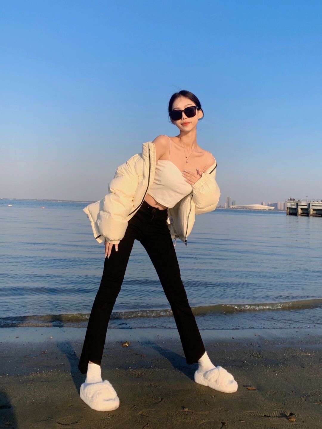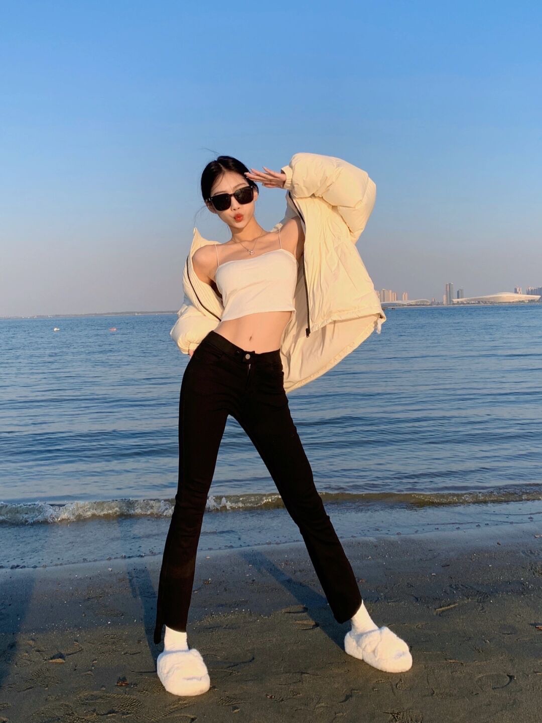 沙滩海边🌊酷女孩拍照姿势➕辣妹穿搭和滤镜|||绝美的夕阳☀️阳光海滩真的太美啦~拍出直接辣妹