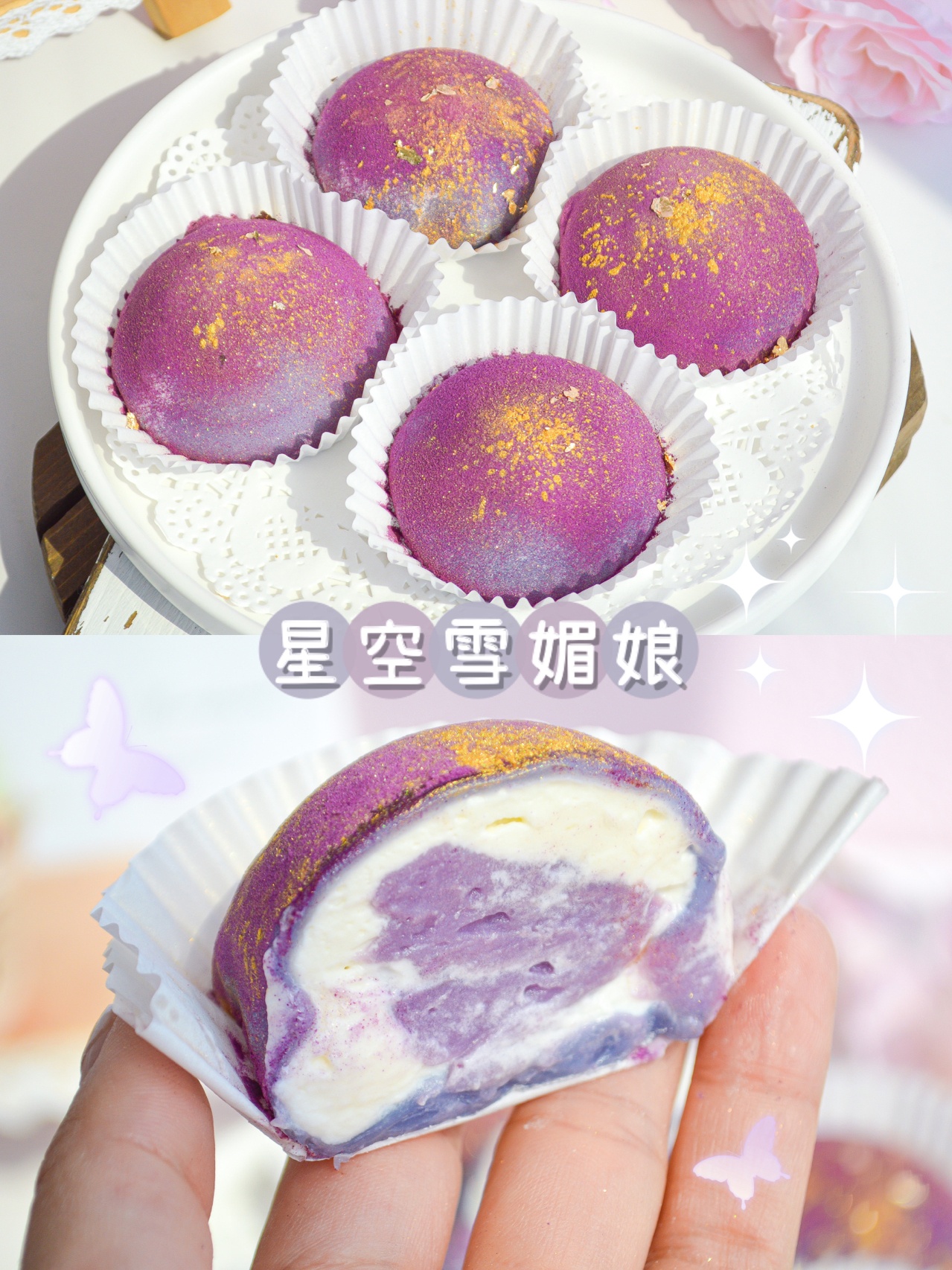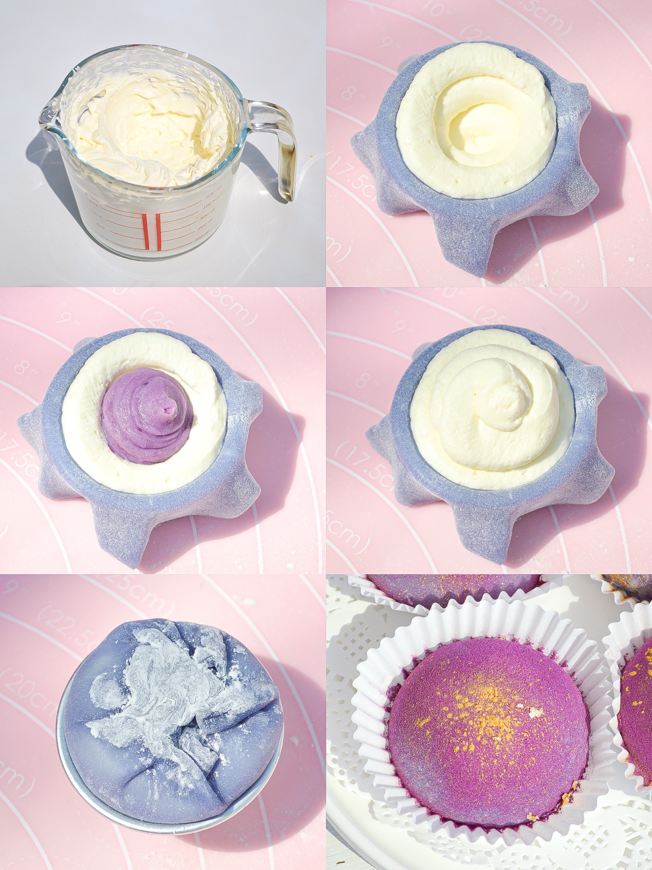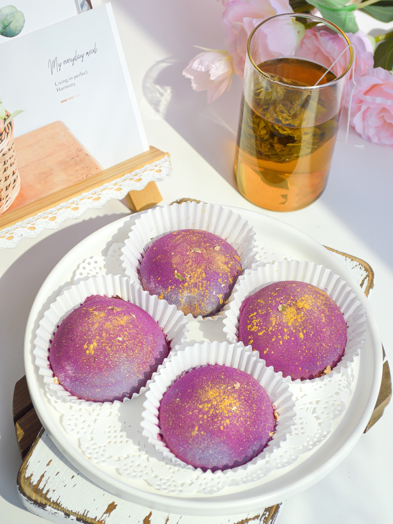 6️⃣表面撒上紫薯粉,金粉和金箔点缀