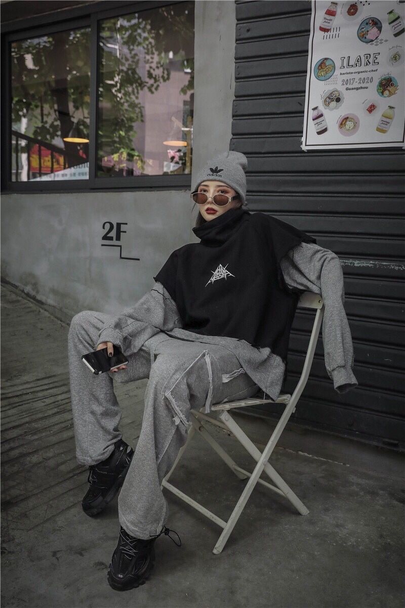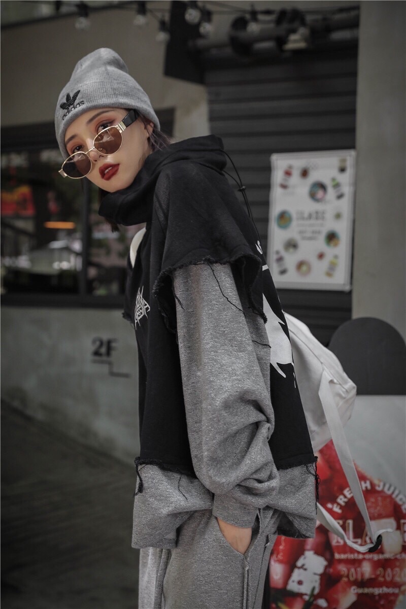 这件拼接撞色卫衣嘻哈风格拉满🤸♀️