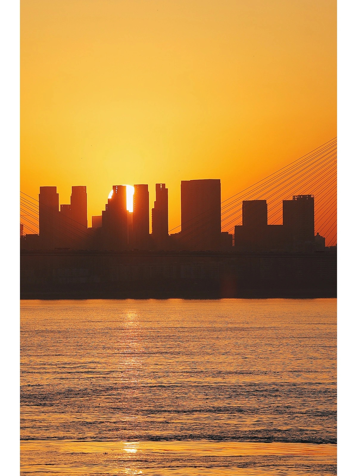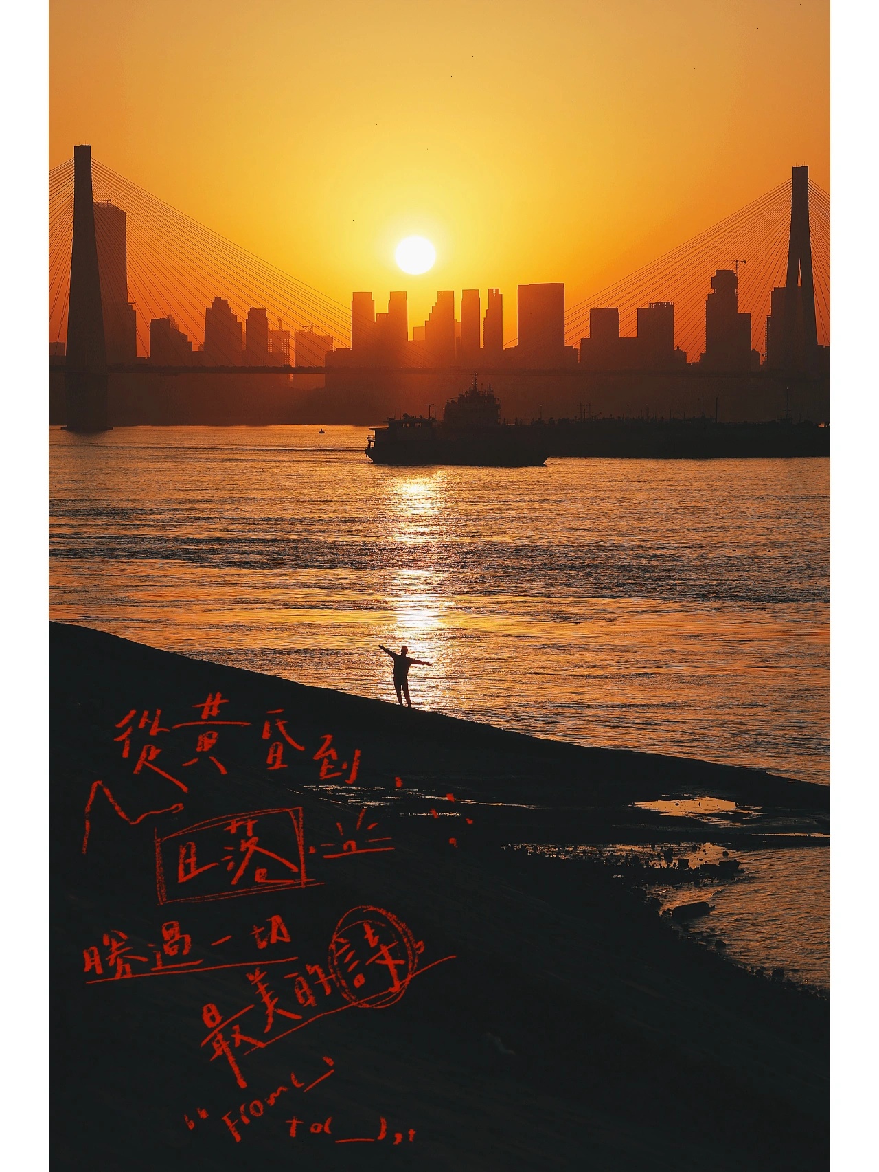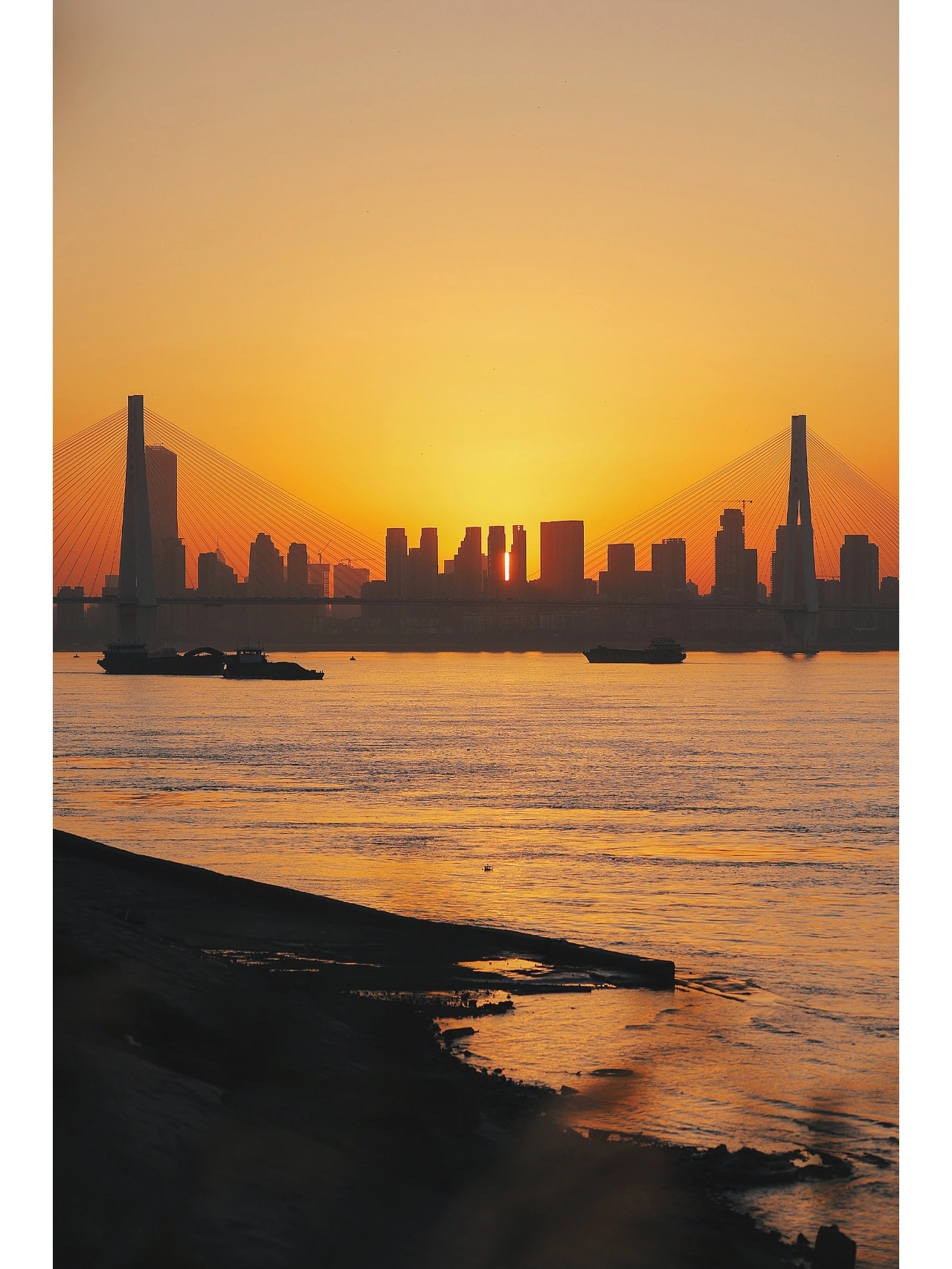 又到了长江枯水期,“看海”的季节没有“海”的青山江滩,周末人也不多。而黄昏来临,这里却有从二七桥和高楼落下的悬日夕阳。在亲水小路上,看眼前的江面粼粼波光,完全不输海边日落。