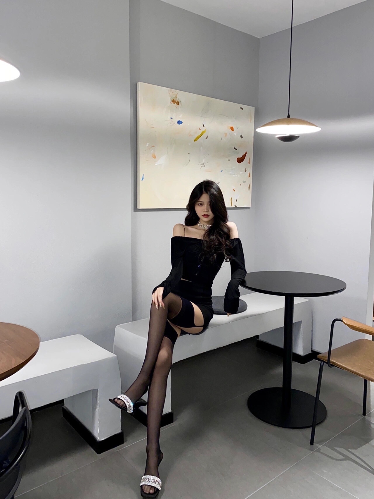 吊带上衣➕吊带袜上下呼应的效果好喜欢!