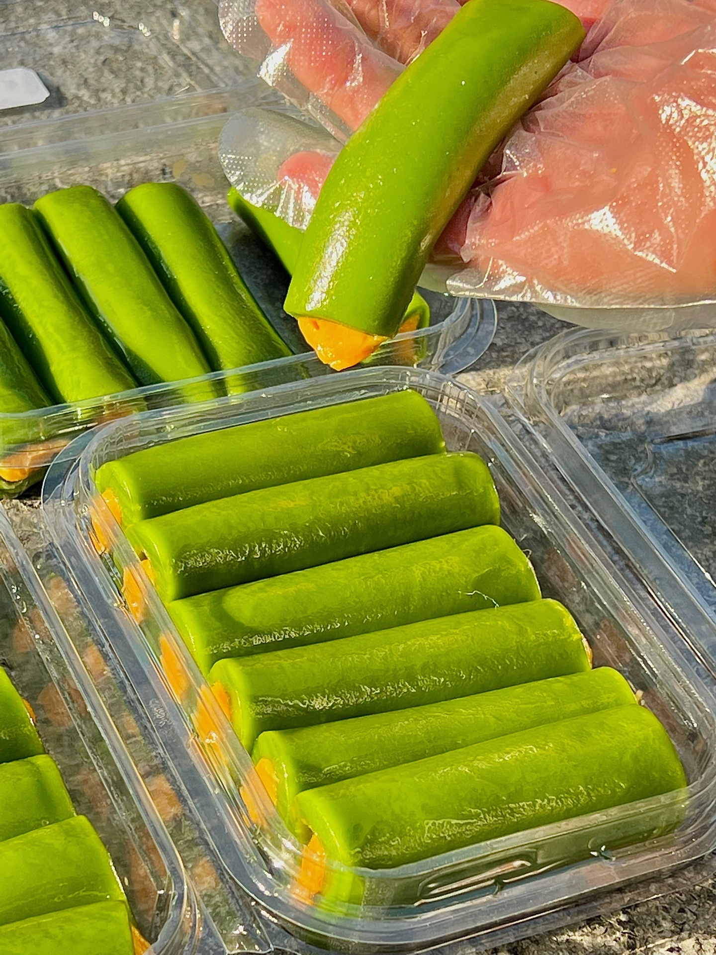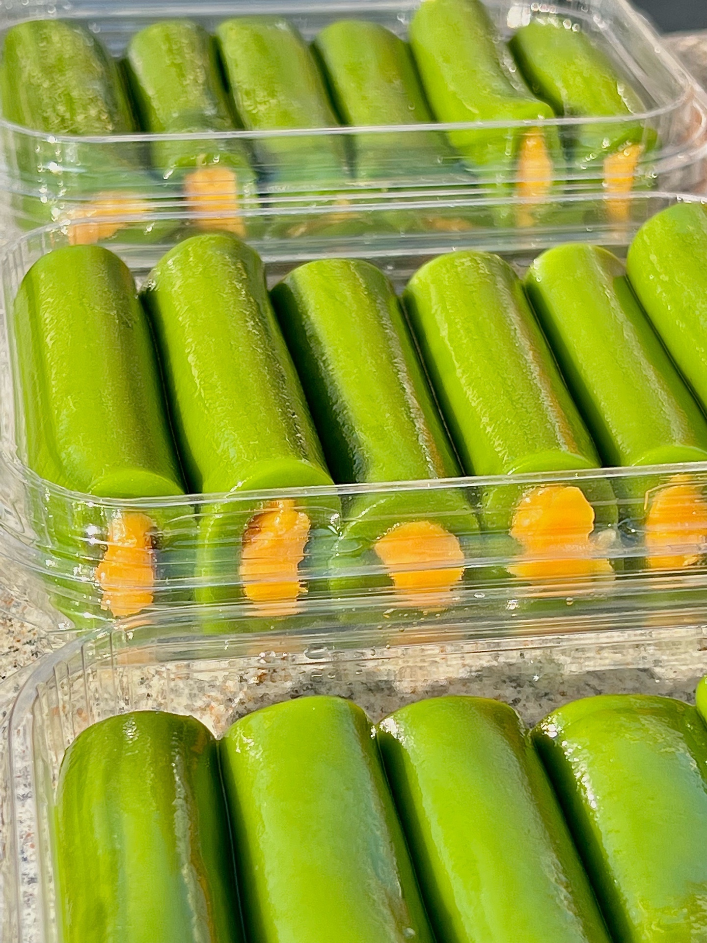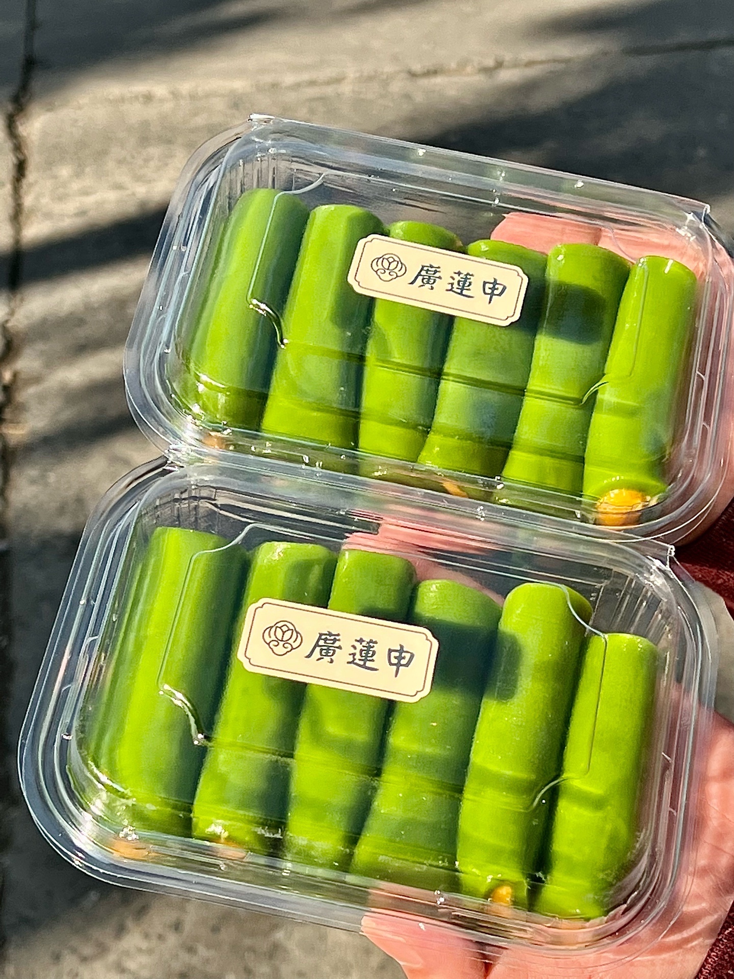 ✔️绿色的条头糕:外皮是糯唧唧的,绿茶味🍵