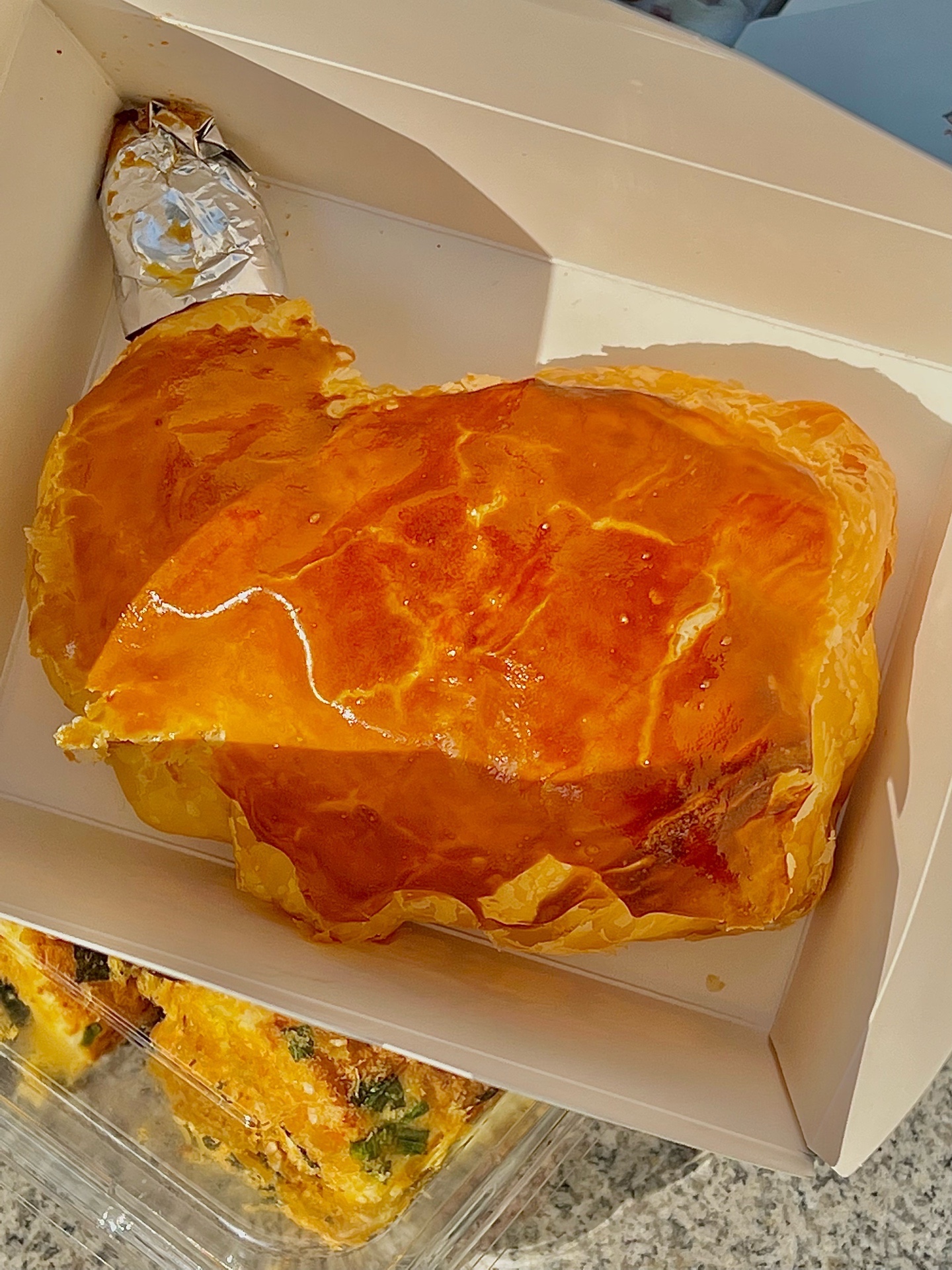 ✔️酥皮手枪鸡腿包:外皮很酥,面包烤的特别香,里面包着1⃣️整个大鸡腿🍗,15.8r真香!