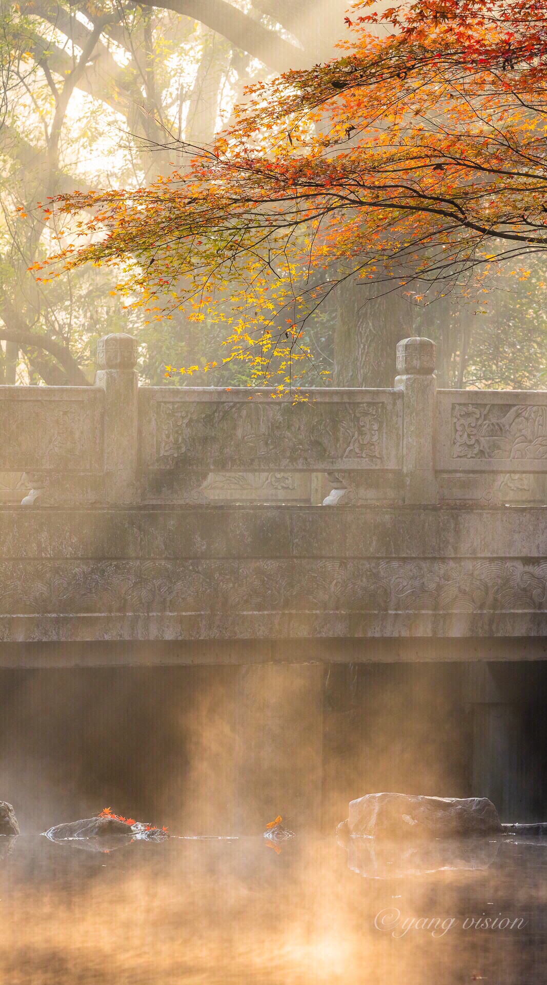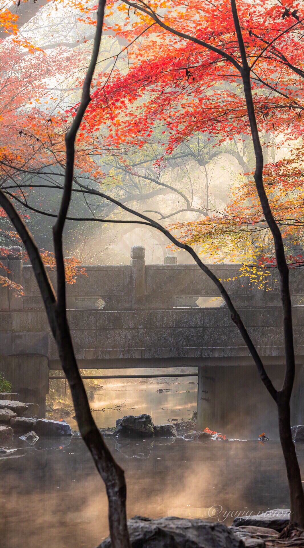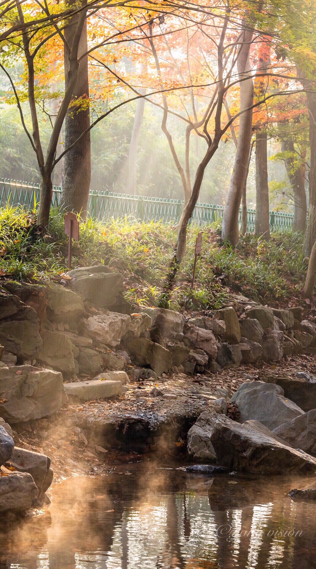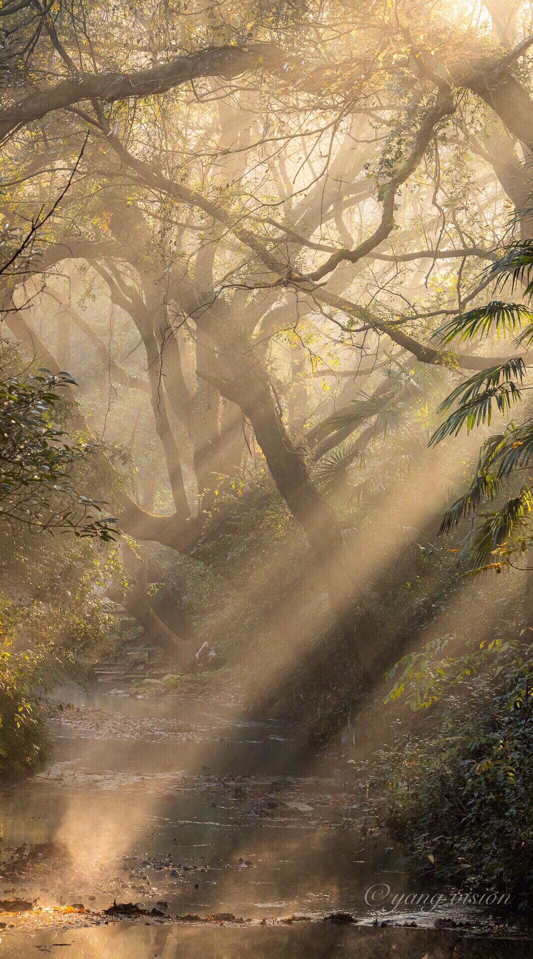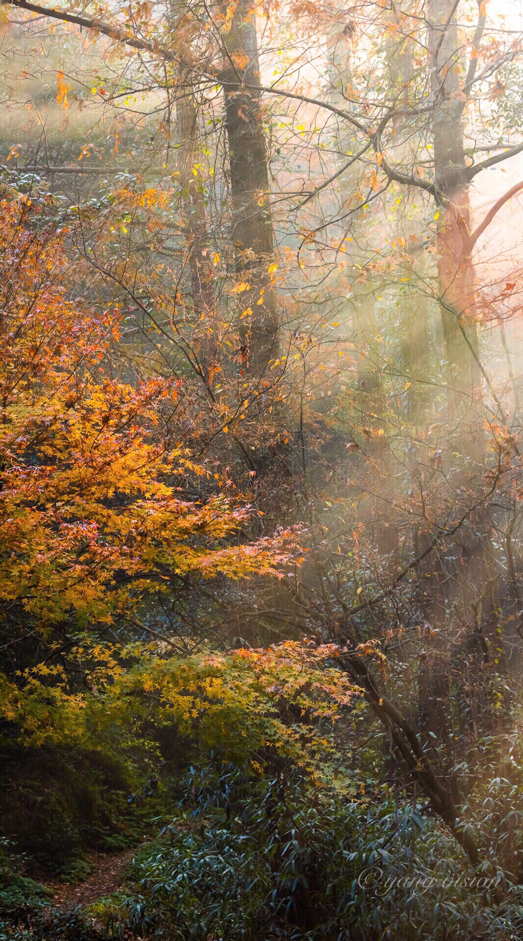 初冬,清晨的九溪烟树,金光彩林晨雾,如梦如幻!