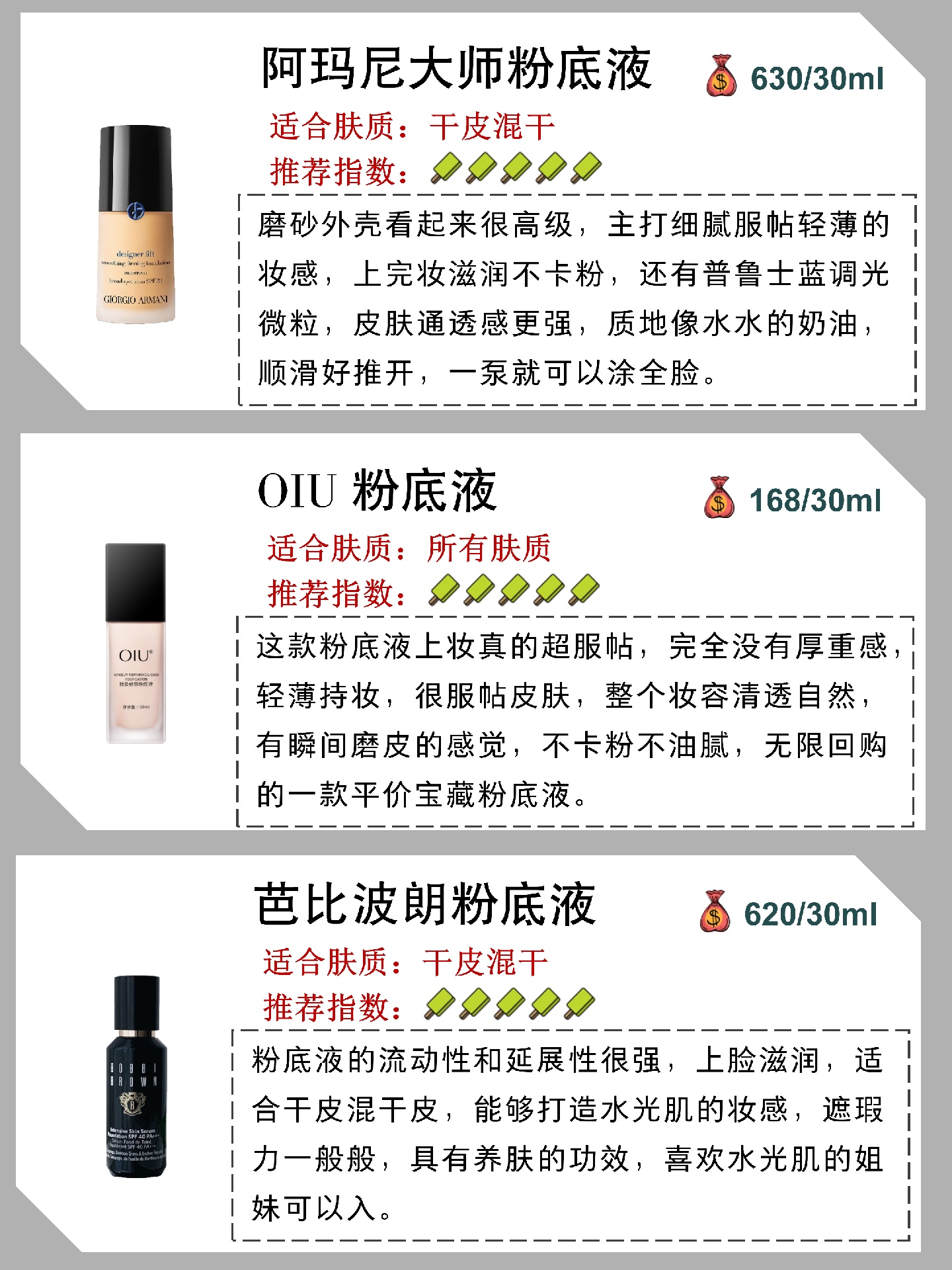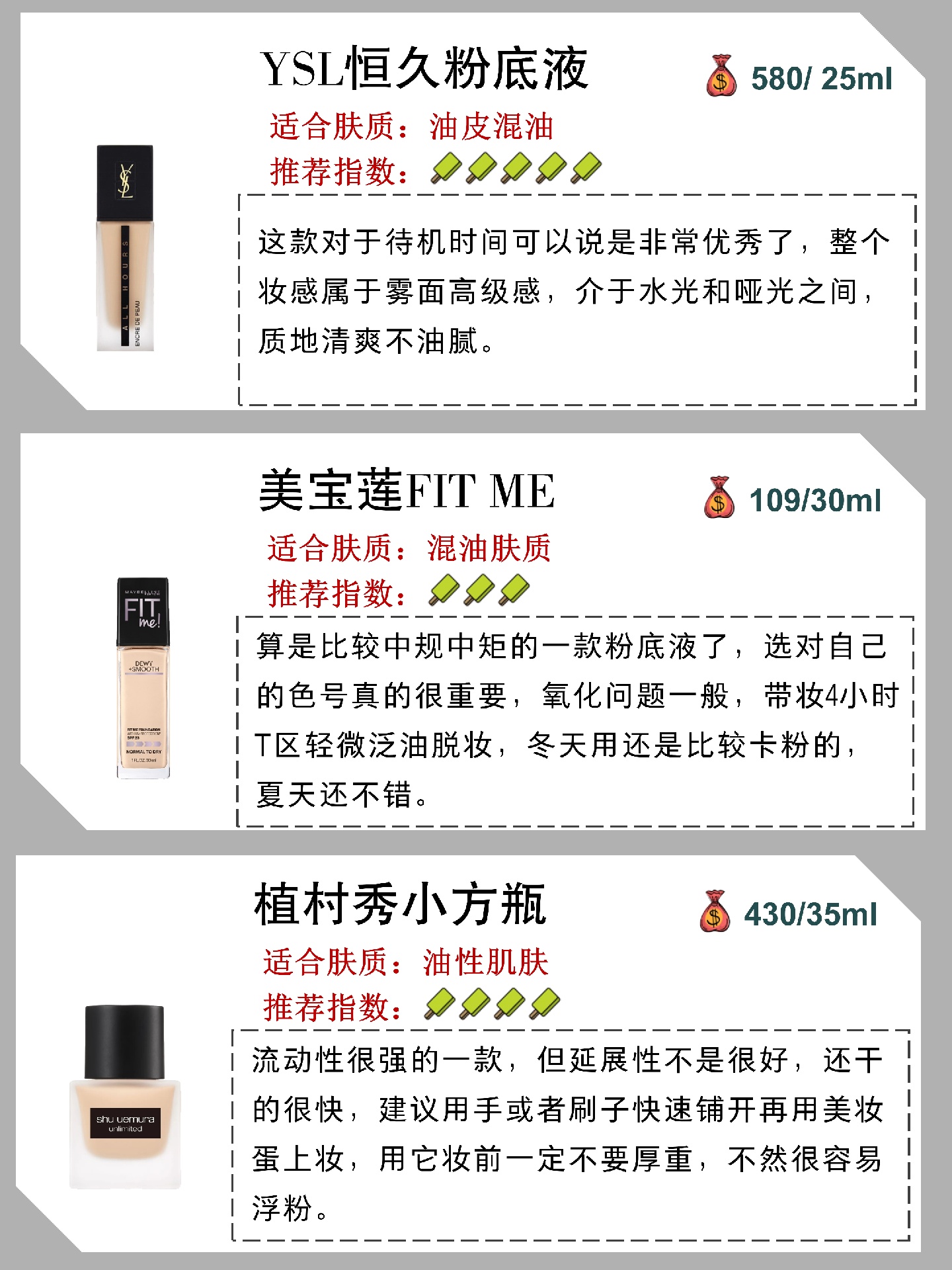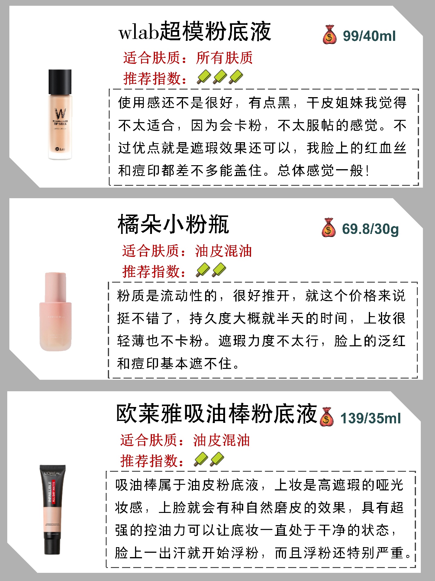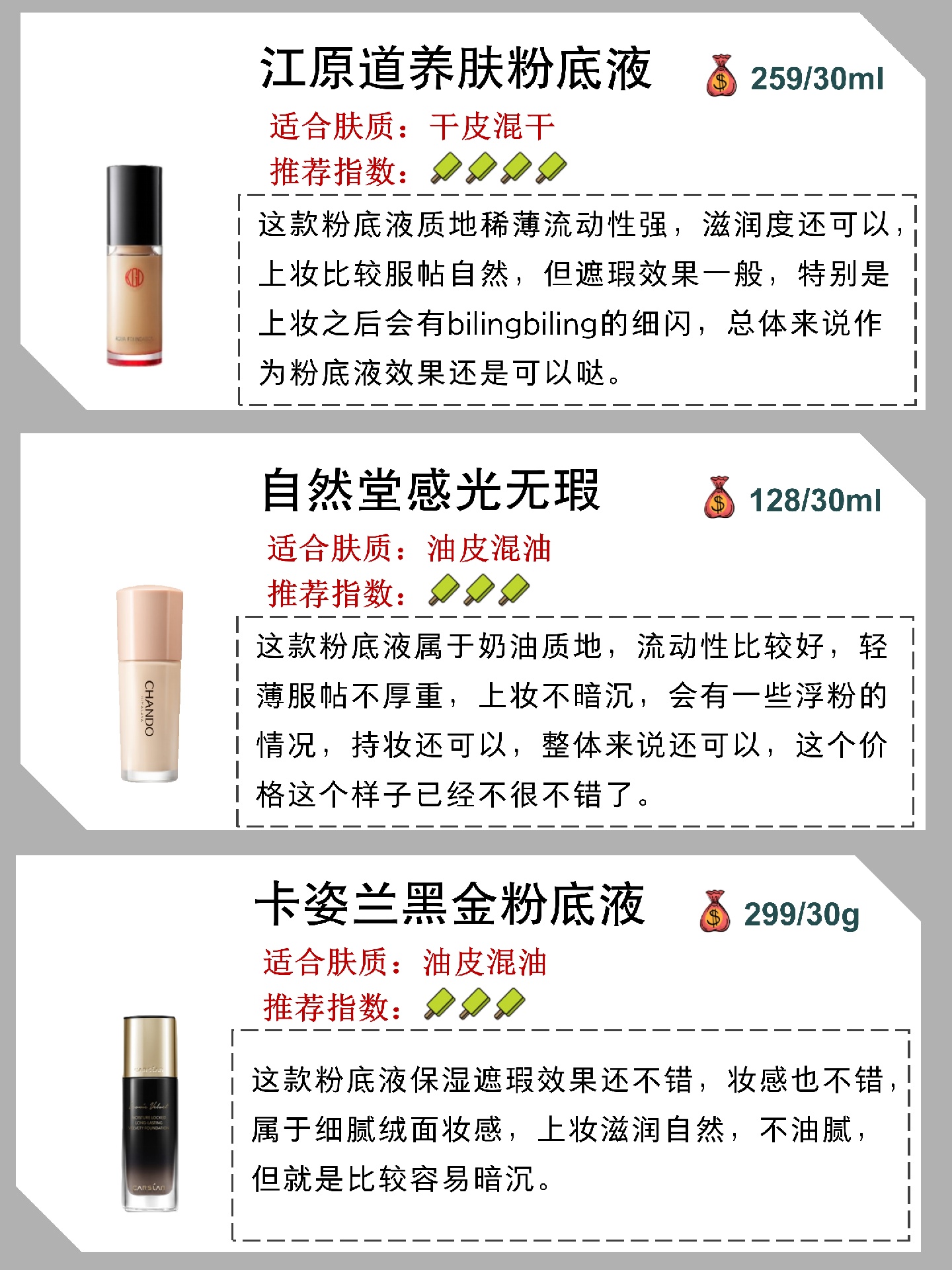 不同肤质都有,准备换粉底液的可以来抄作业啦