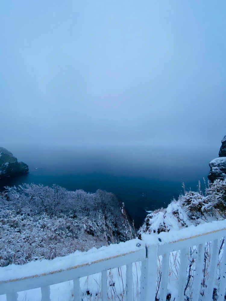 下雪天~海天地一片白色~在山顶上敲了幸福的钟