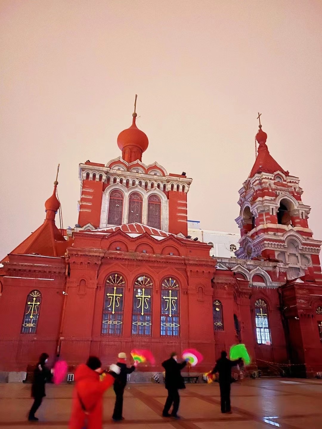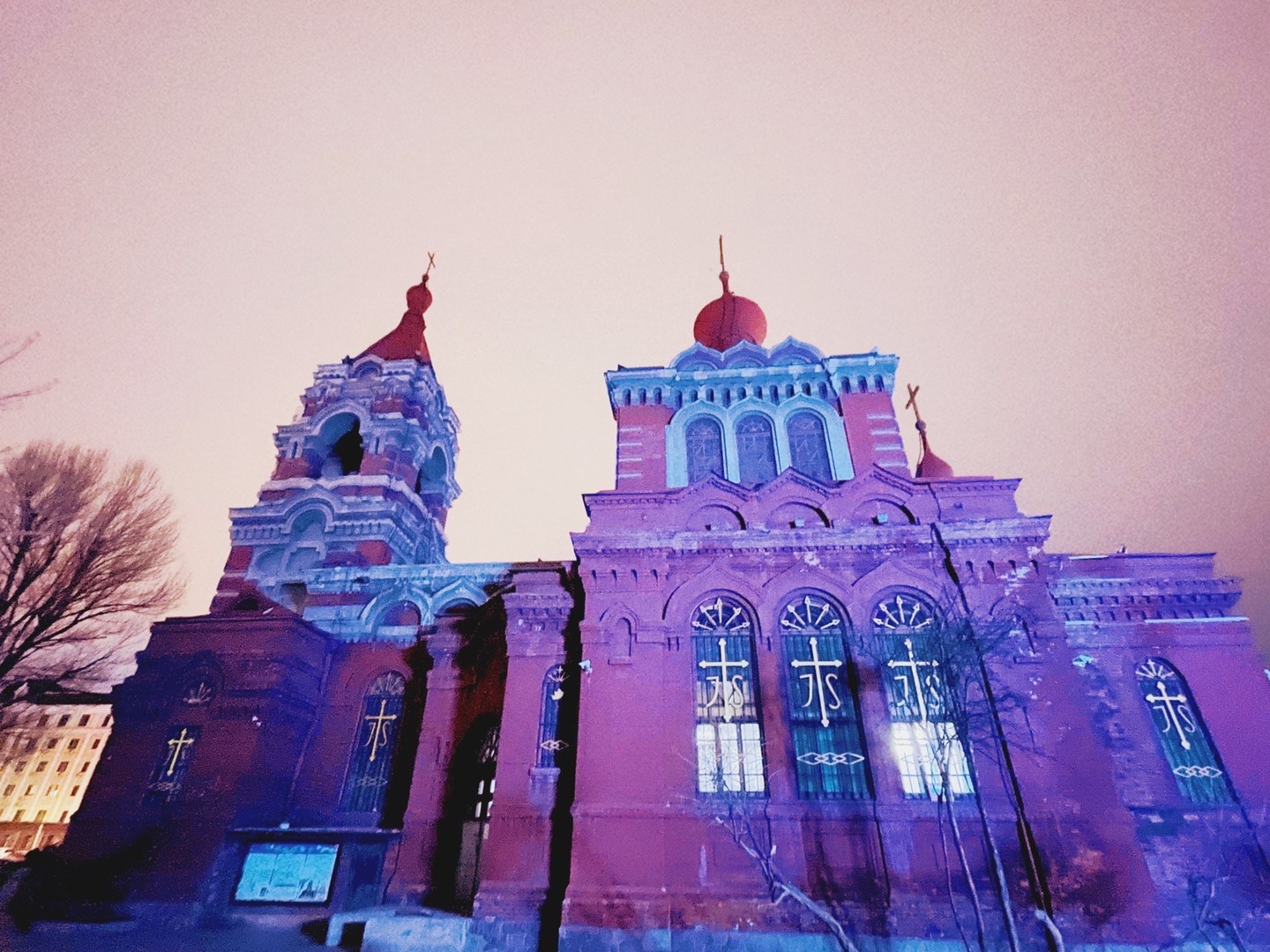 俄罗斯巴洛克式建筑,原来属于东正教,1980年转给天主教教会,现名为圣·母无染原罪教堂。(老百姓又叫它革新街教堂或者士课街教堂)