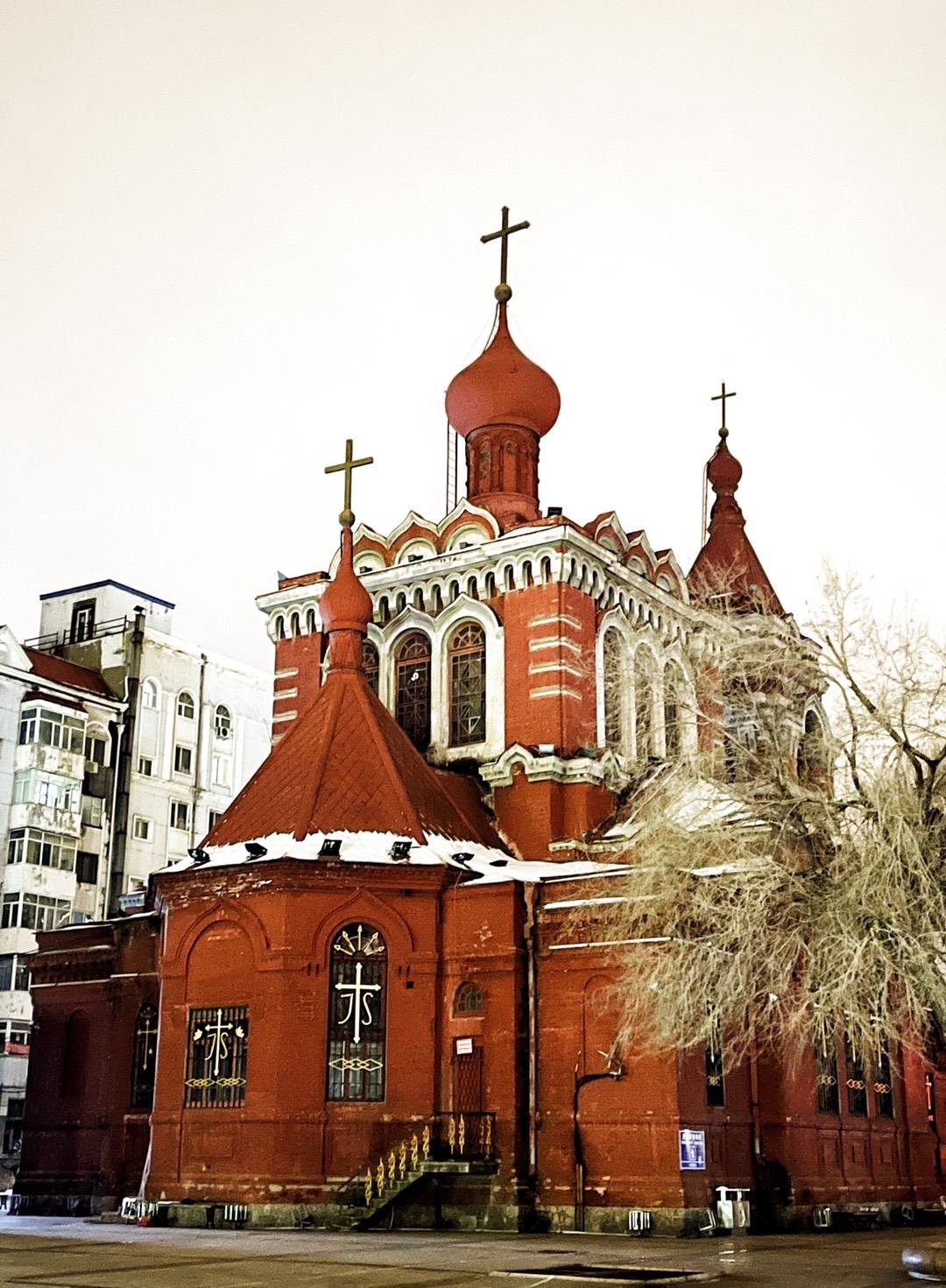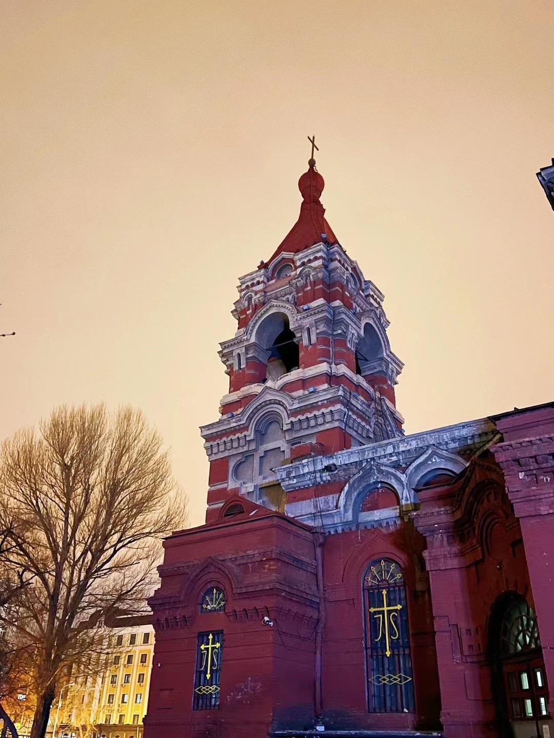 圣·阿列克谢耶夫(圣阿莱克西)教堂,是一座不折不扣的东正教堂。保存状况最好的建筑遗存,位于果戈里大街和革新街交口处的一座红白相间的砖木结构教堂。