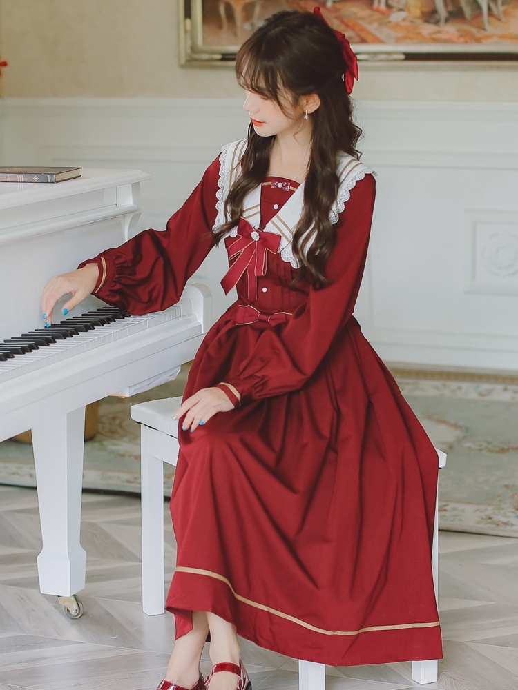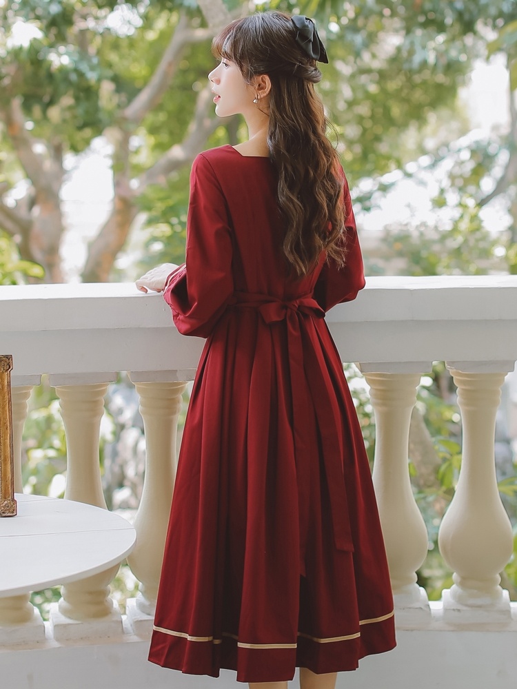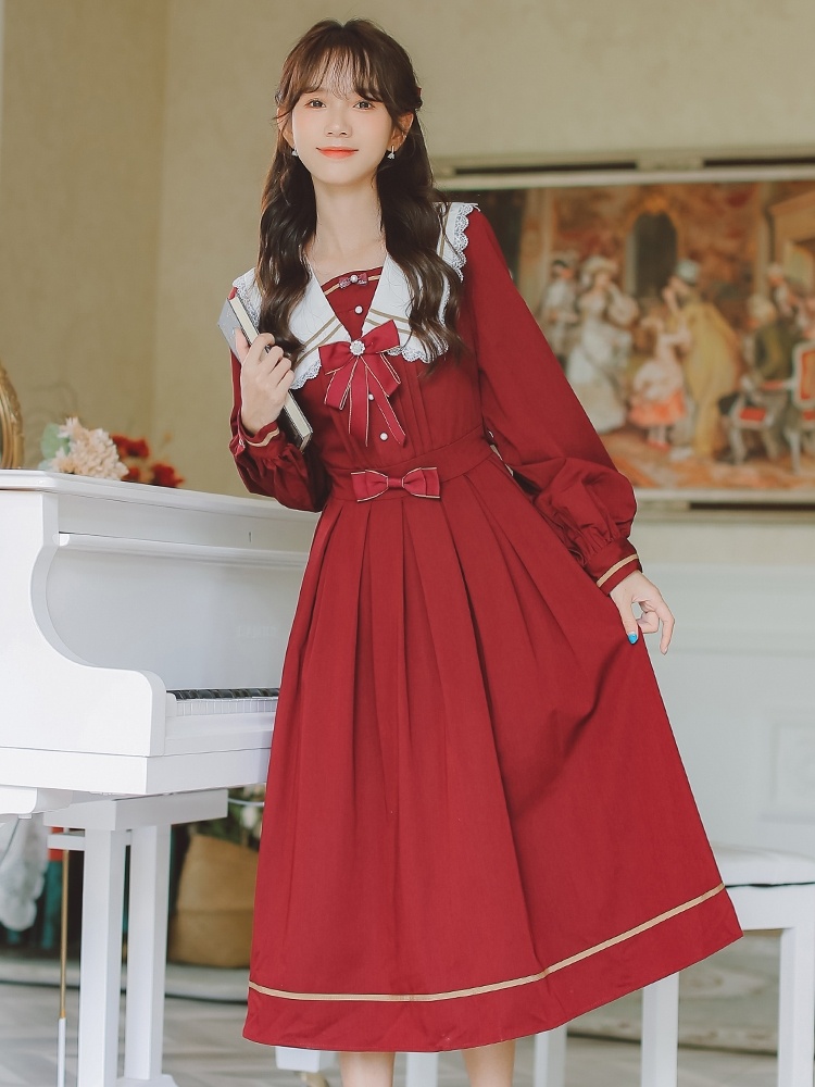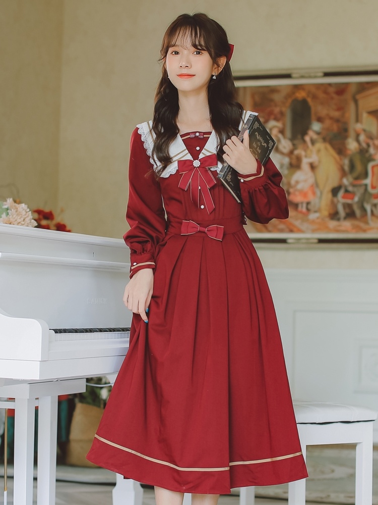 轻lo裙日常软妹学院风红色连衣裙可爱少女学生jk制服裙