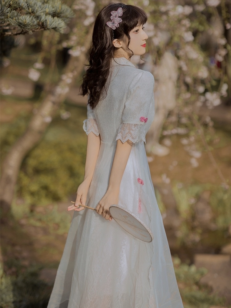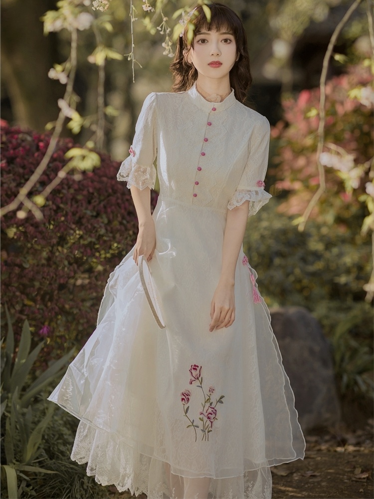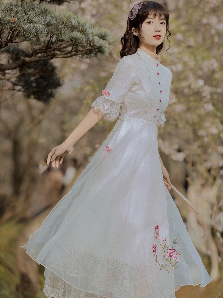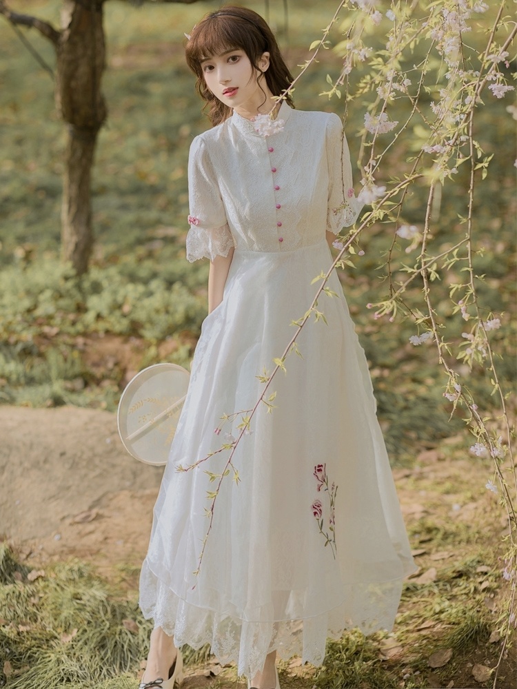 复古中国风白色蕾丝刺绣旗袍改良版连衣裙仙气超仙森系初恋裙