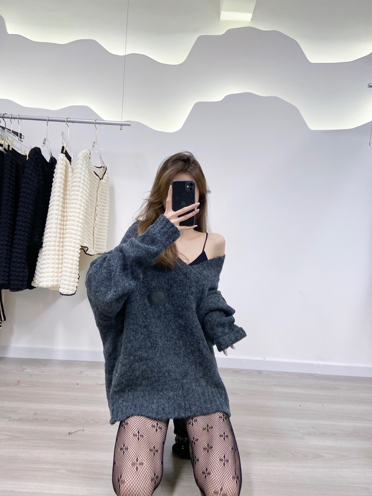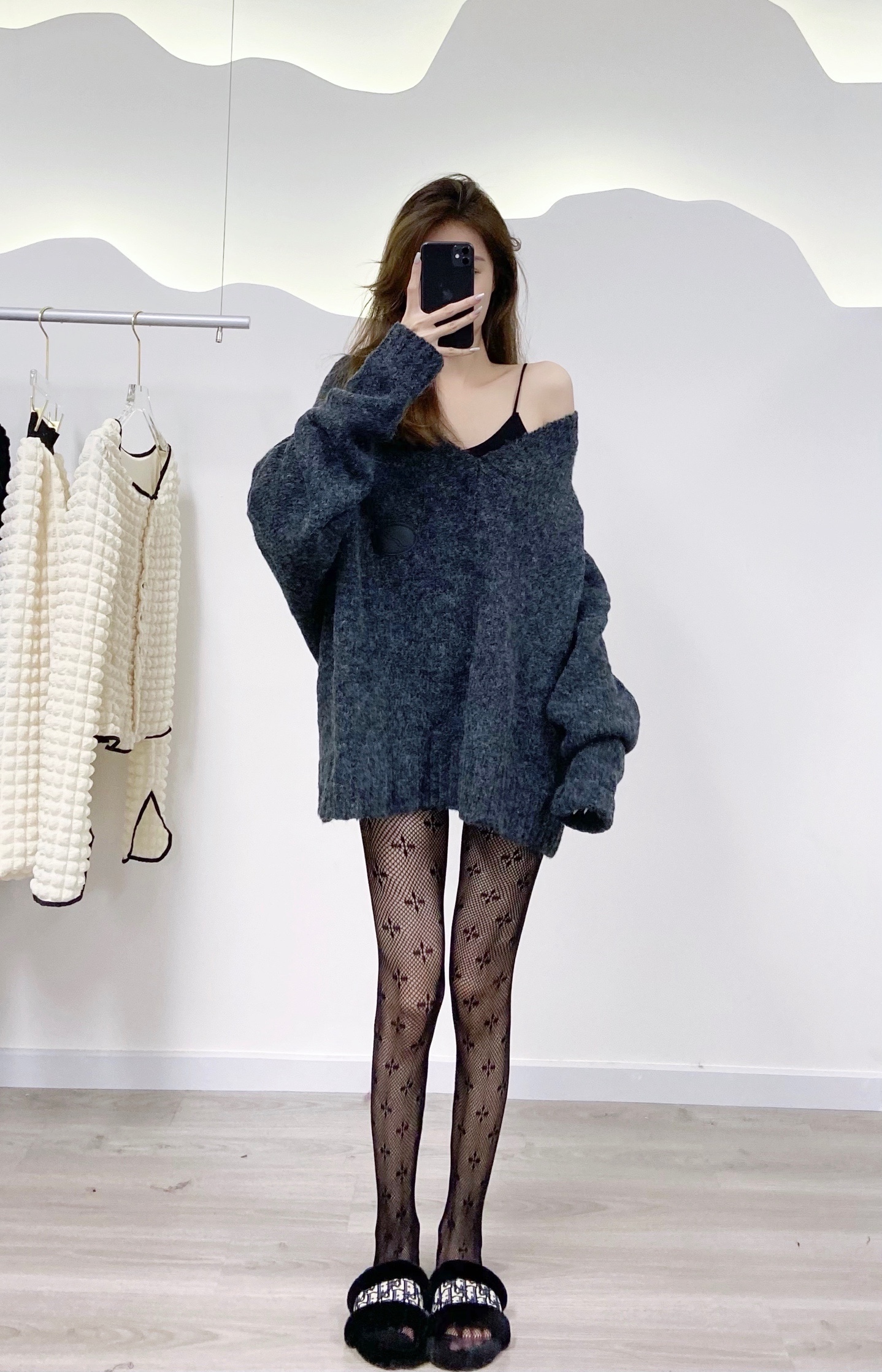👔毛衣这样搭配太好看啦 配丝袜加上毛毛拖鞋或者高筒靴也很好看 超级显身材又休闲 露个小香肩更有女人味
